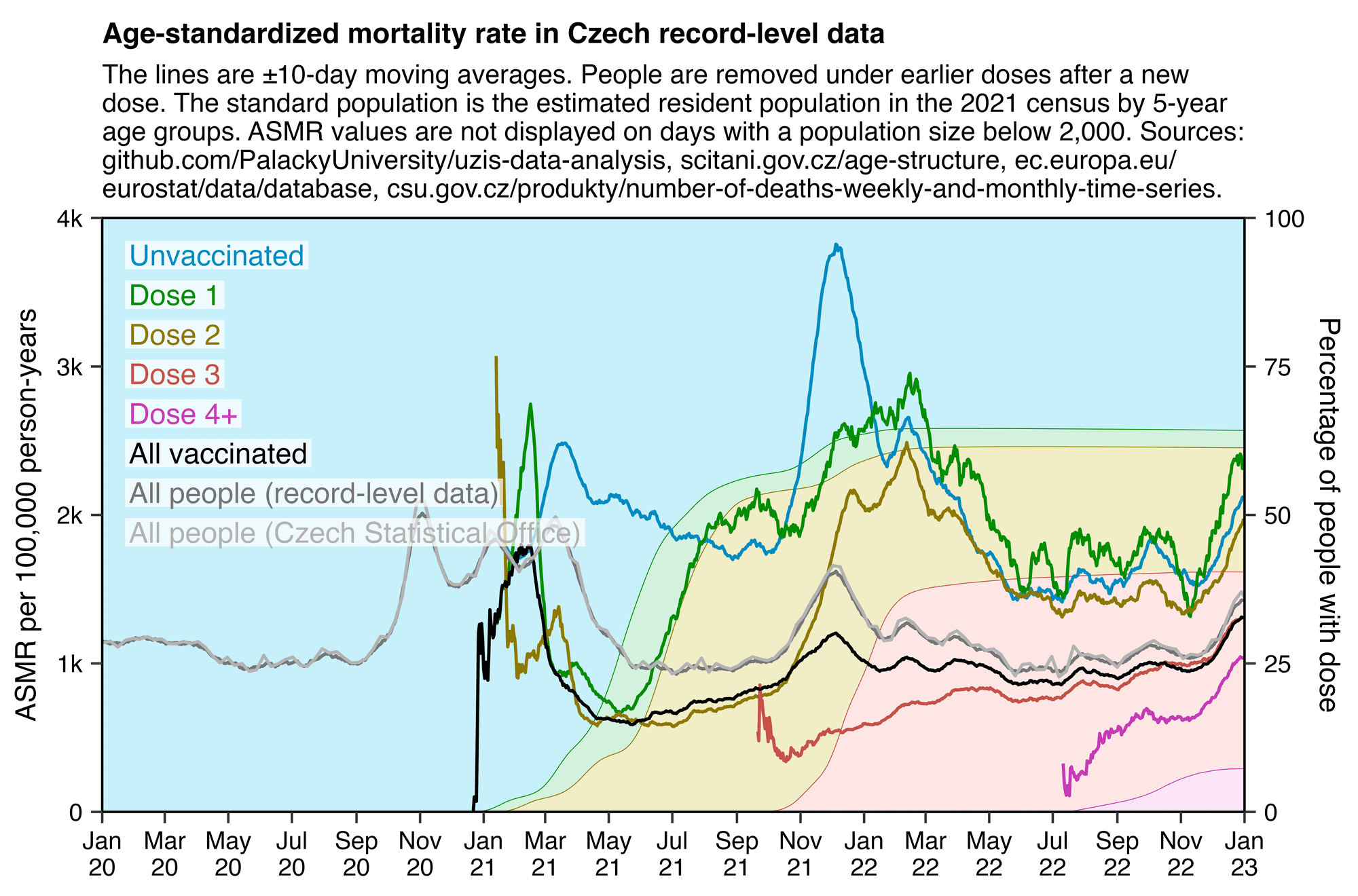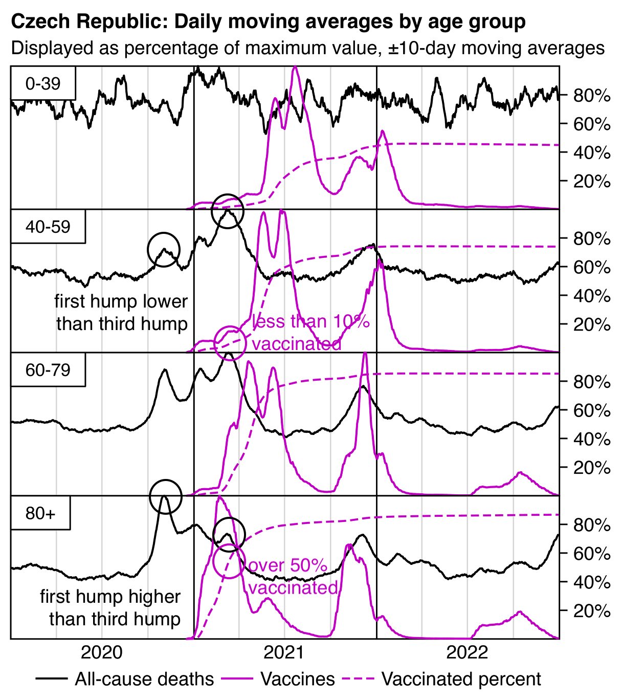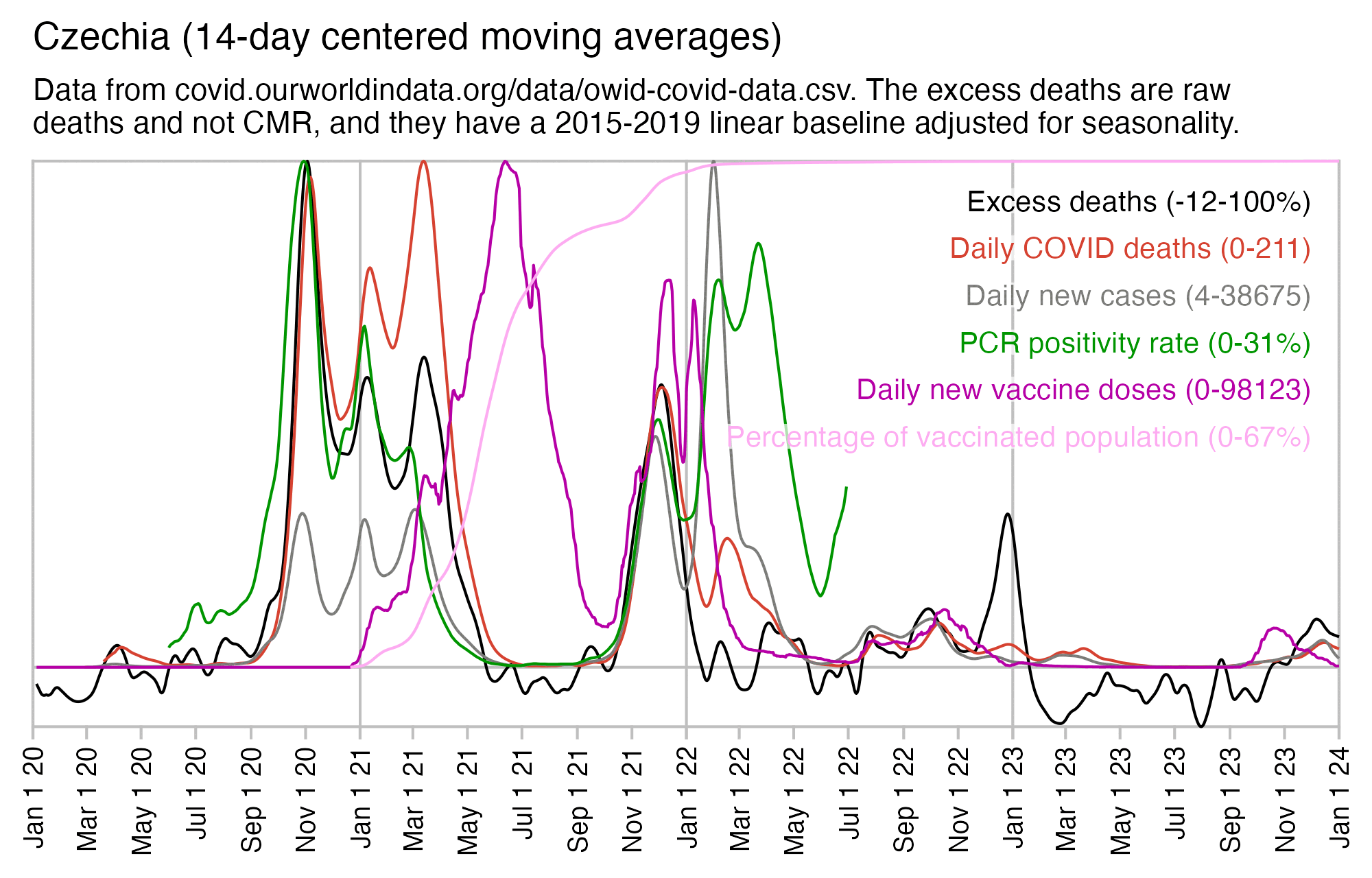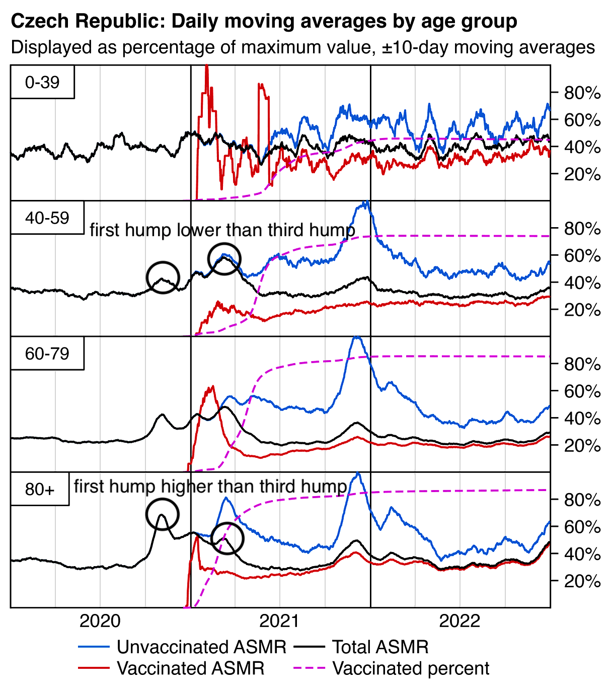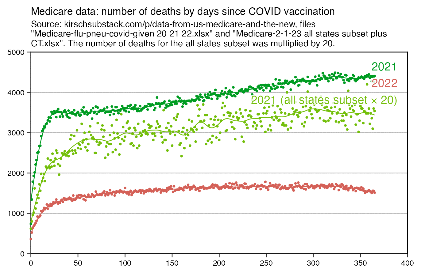 Kirsch said that 75% of people were vaccinated, but I don't know if his figure is supposed to have included all ages or if it didn't include children in the ages that generally didn't get vaccinated. Because if you include all ages, then the total percentage of vaccinated people in the record-level data is only about 64-65% in 2022 (which is similar to OWID's figure of about 66% vaccinated people in 2022):