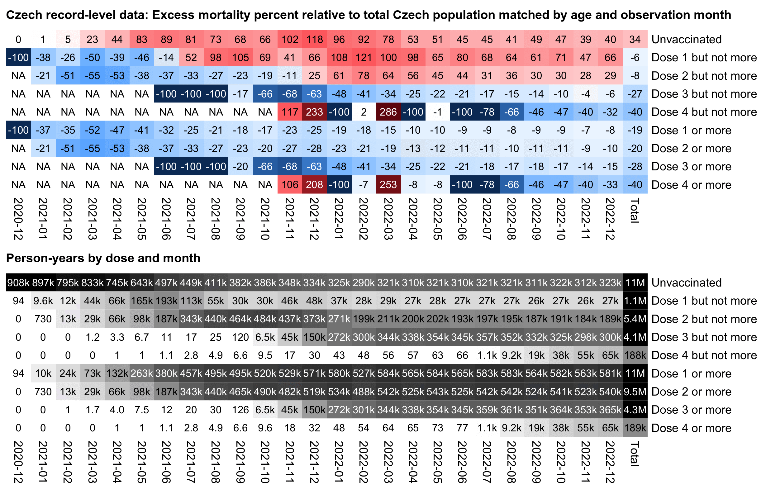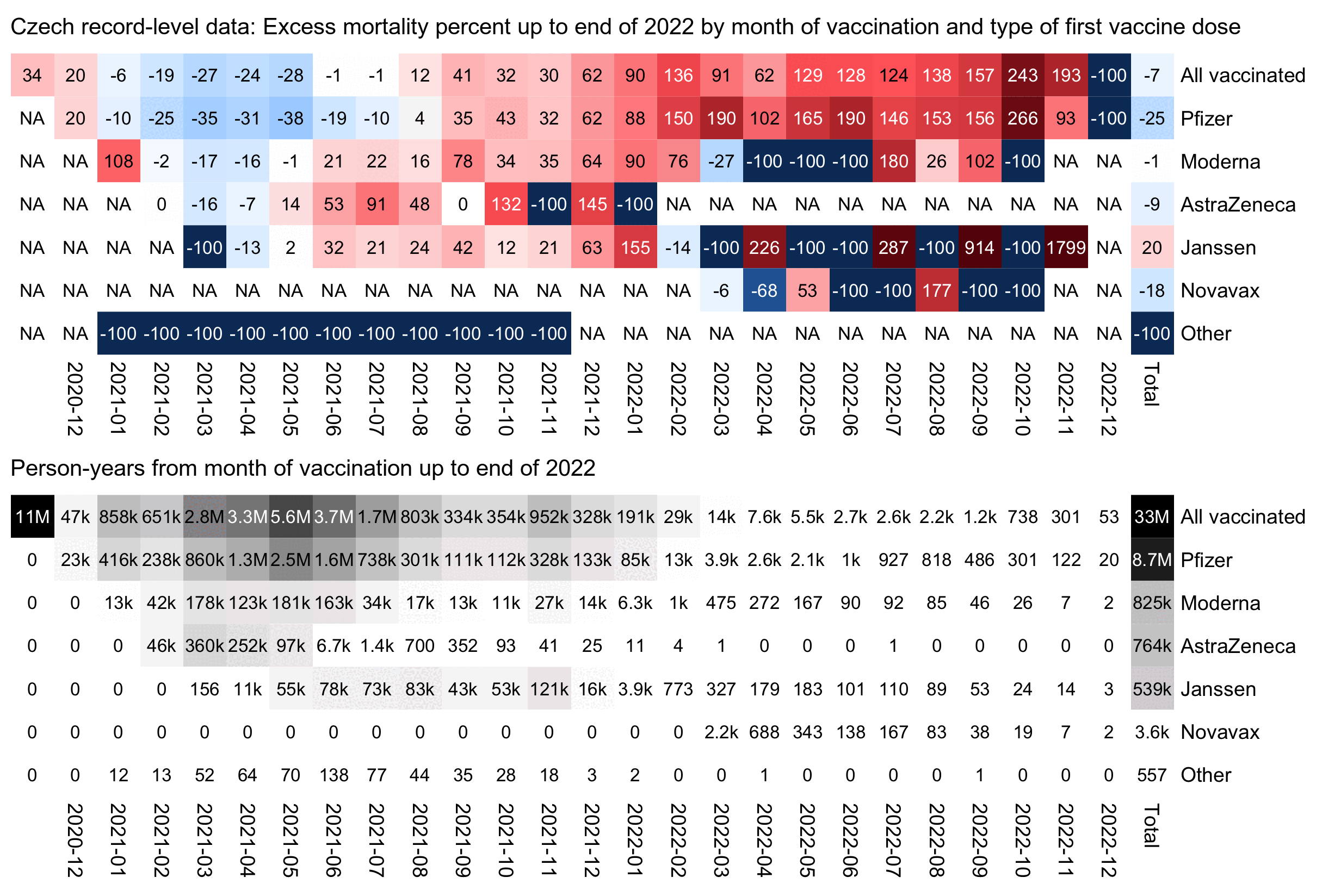 In March 2024 Stanislav Veselý received a FOI response of vaccination data from the Institute of Health Information and Statistics of the Czech Republic: https://www.skirsch.com/covid/CzechFOIA.pdf. The dataset includes rows for about 11 million people, who have columns for the year of birth, date of death, dates of vaccination for doses 1-7, and the type and batch number of each dose.