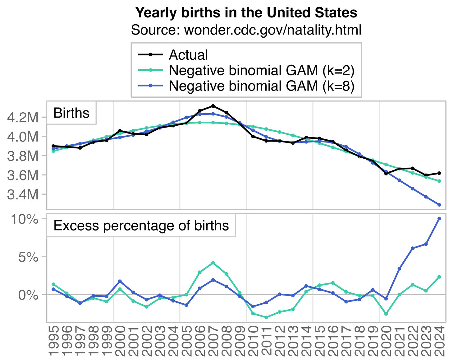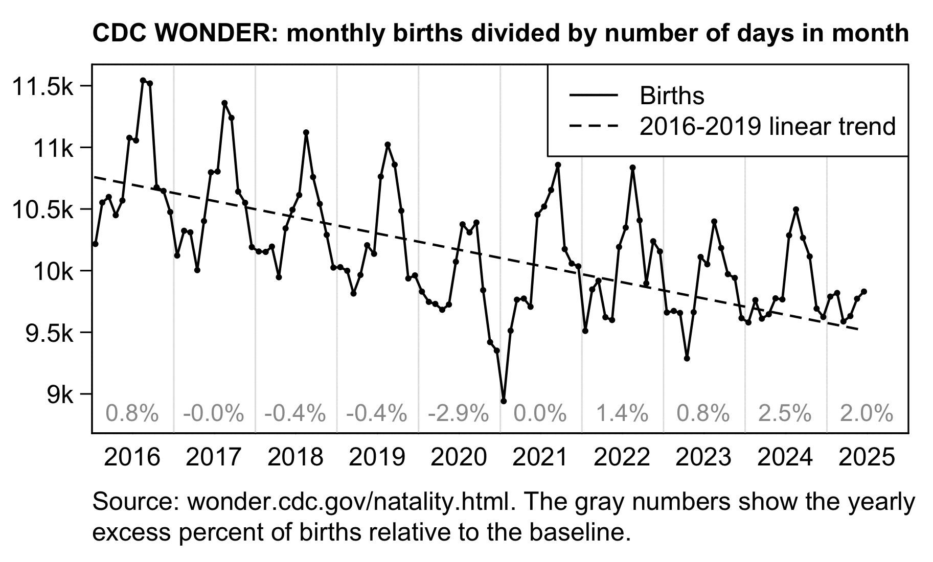 So basically as a justification for why his legacy trend should have an extremely steep slope, he said that there had been a decreasing trend in the rate of births before COVID.