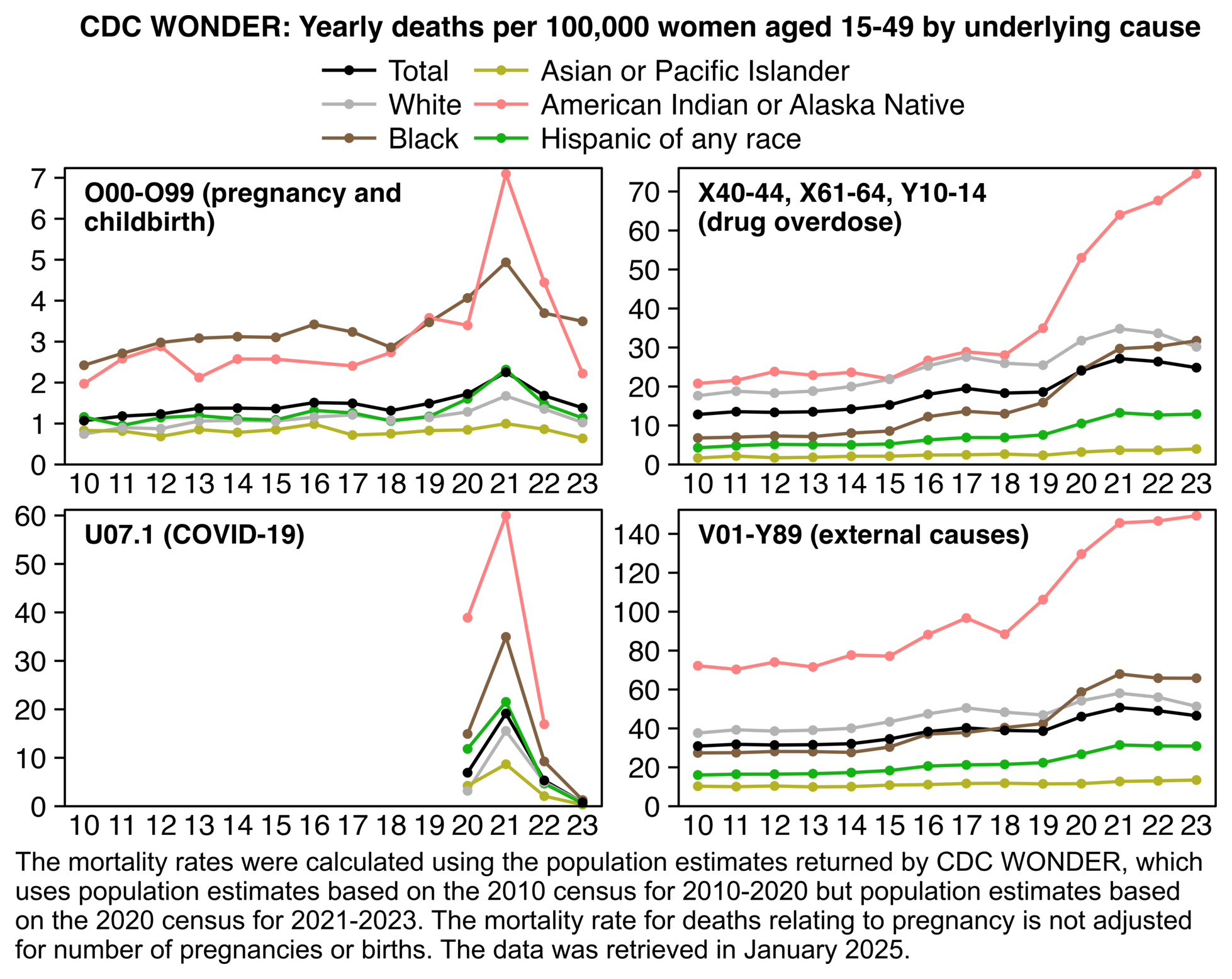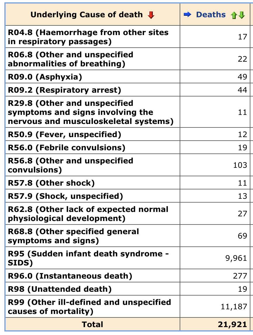 labs(x=NULL,y=NULL,title="CDC WONDER: Deaths with underlying cause A-R or\n999--999 in ages 0-4")+