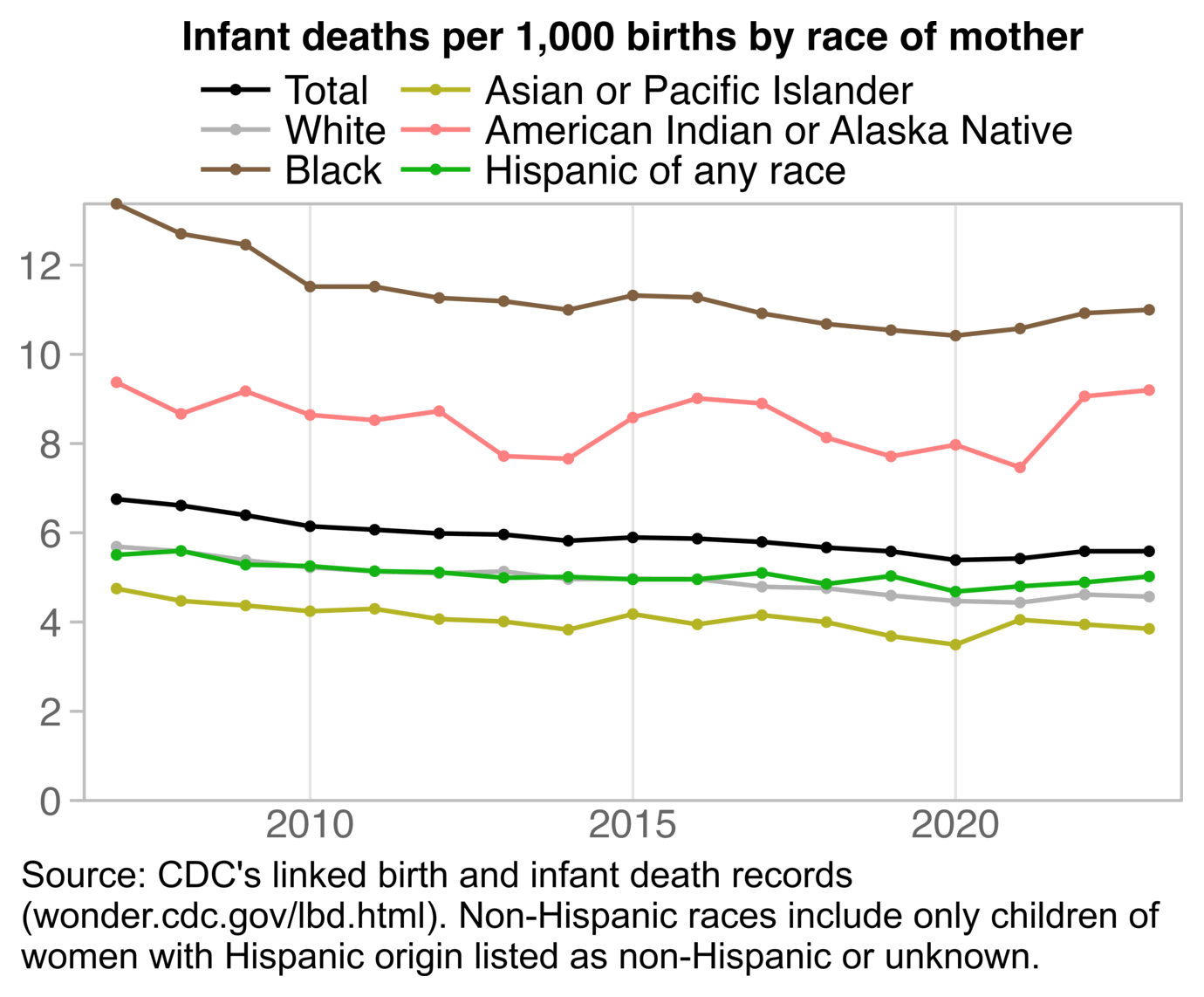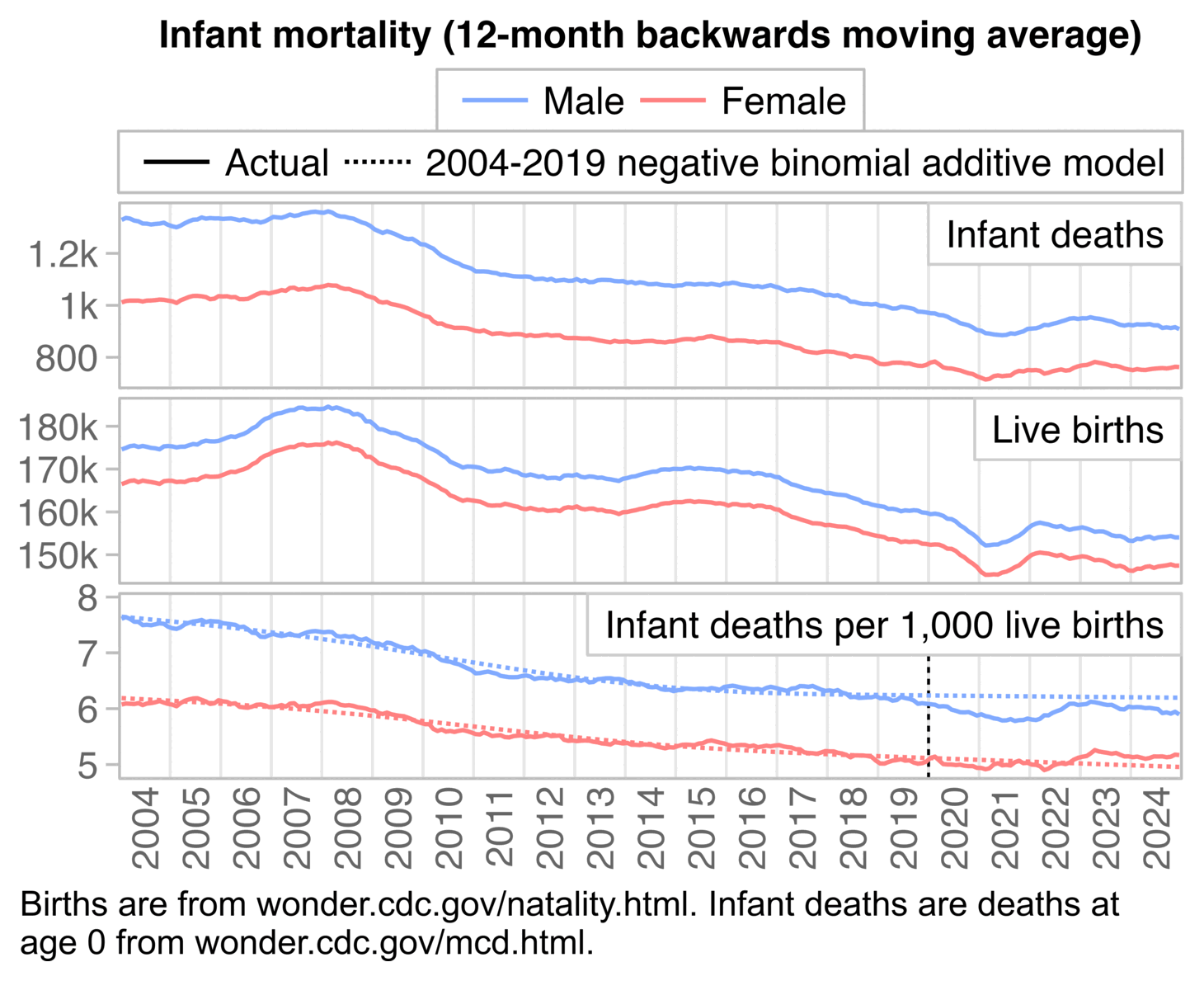 | Real infant mortality rate in the CDC report | 2007 | 2020 | 6.75 | 5.42 | NA | -1.67% | -1.52% | -1.68% |