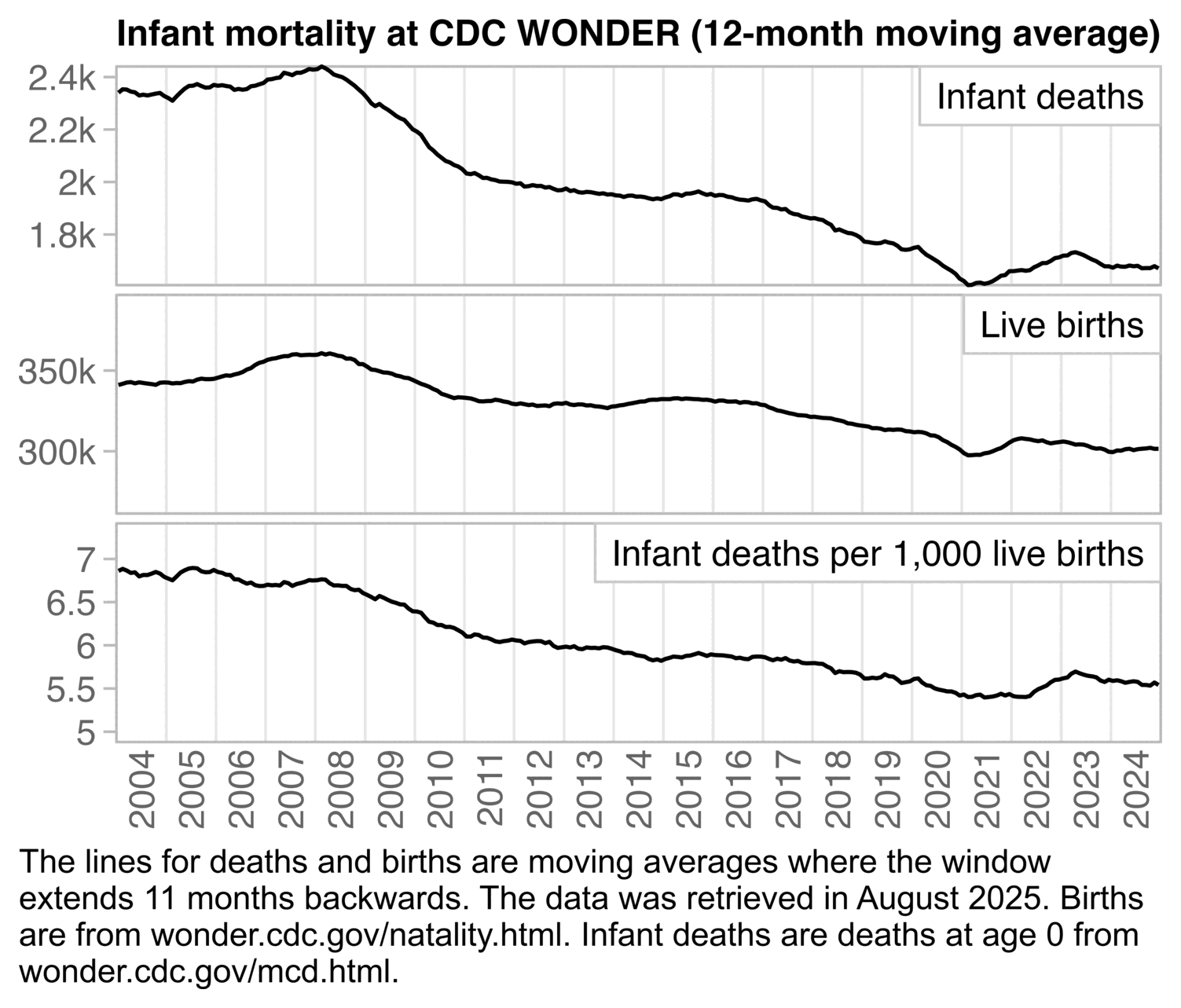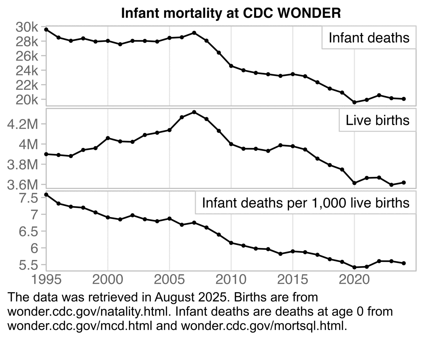 p=merge(t,d)[year<2025,.(x=year,y=c(dead,born,dead/born*1e3),facet=rep(1:3,each=.N))]