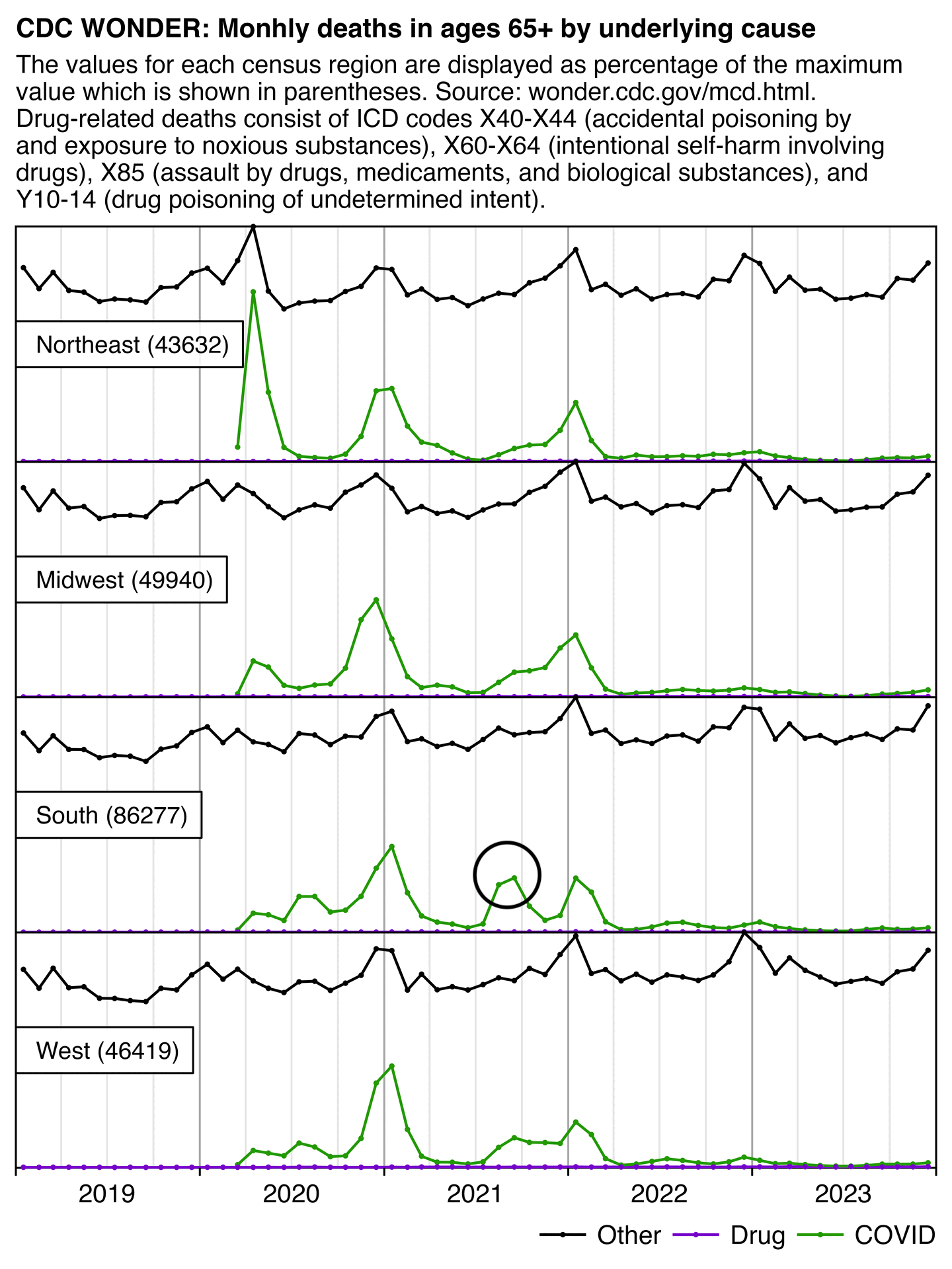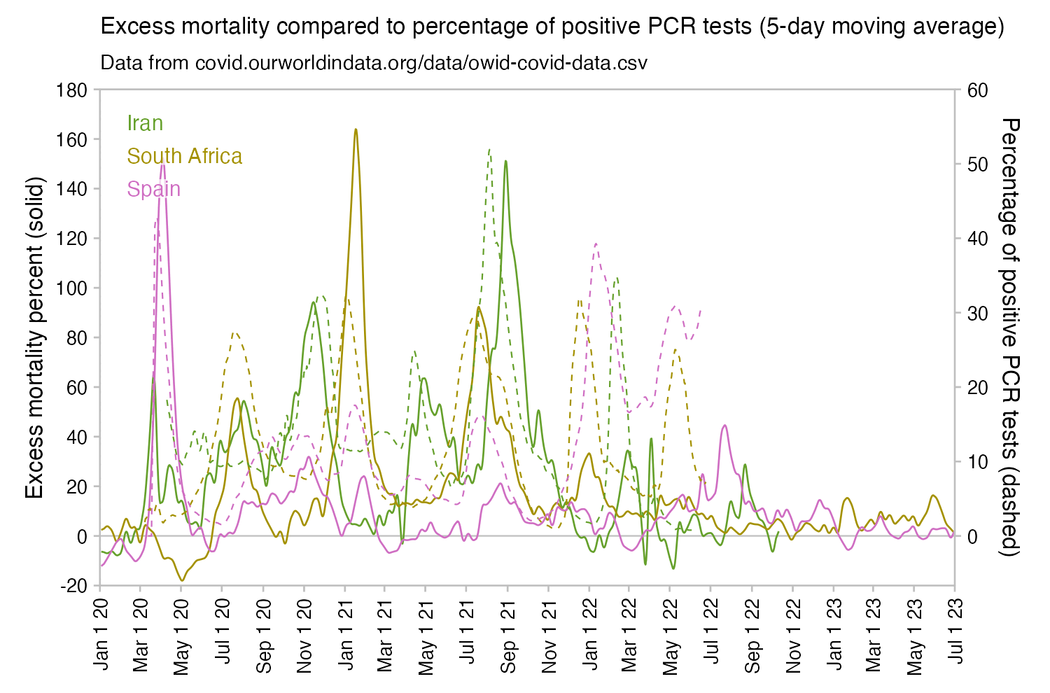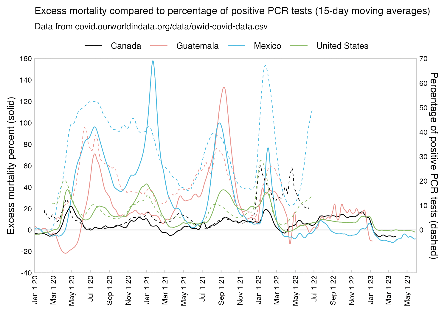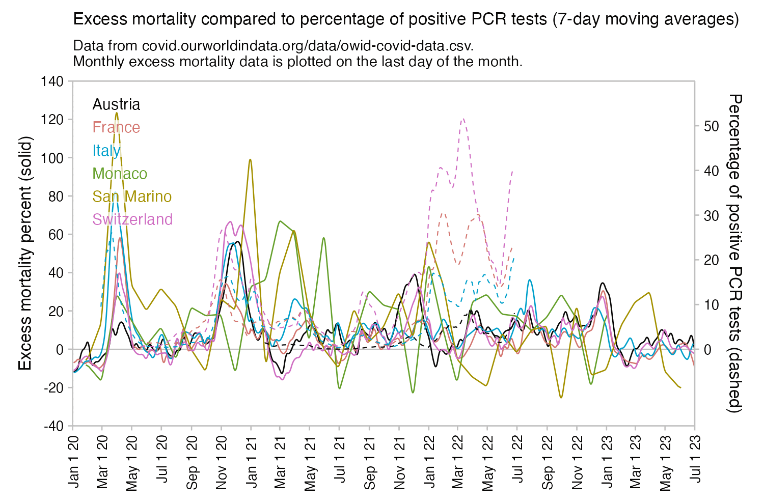People from the no-pandemic camp have suggested that the deaths attributed to COVID were caused by vaccines, by ventilators, by drugs like Remdesivir or midazolam, by rebranded influenza, by bacterial pneumonia, by reduced prescription of antibiotics, by supplementary oxygen treatment, by psychological stress caused by social isolation (like Denis Rancourt), by heat waves in the summer (like Rancourt), by opioid overdoses (like Mark Kulacz), by some kind of a release of toxins (like Sasha Latypova), or by an aerosol attack of bat vaccines which only contained the spike protein but not the full virus (like Karen Kingston).