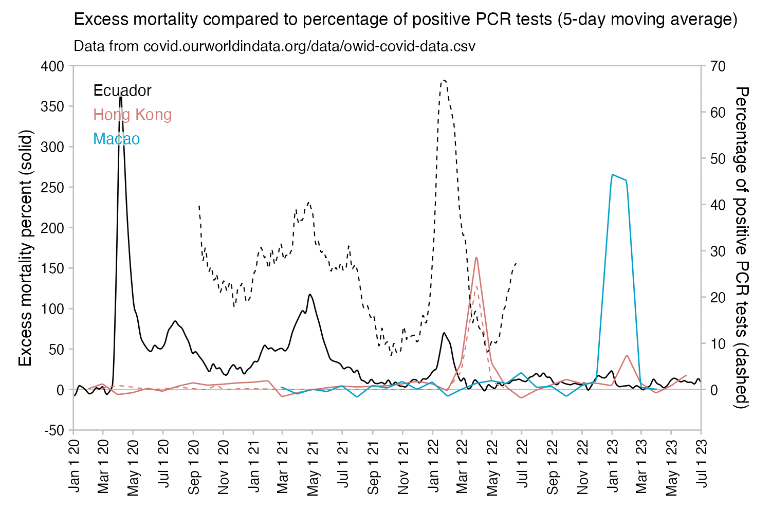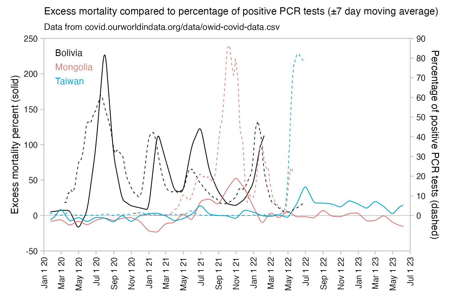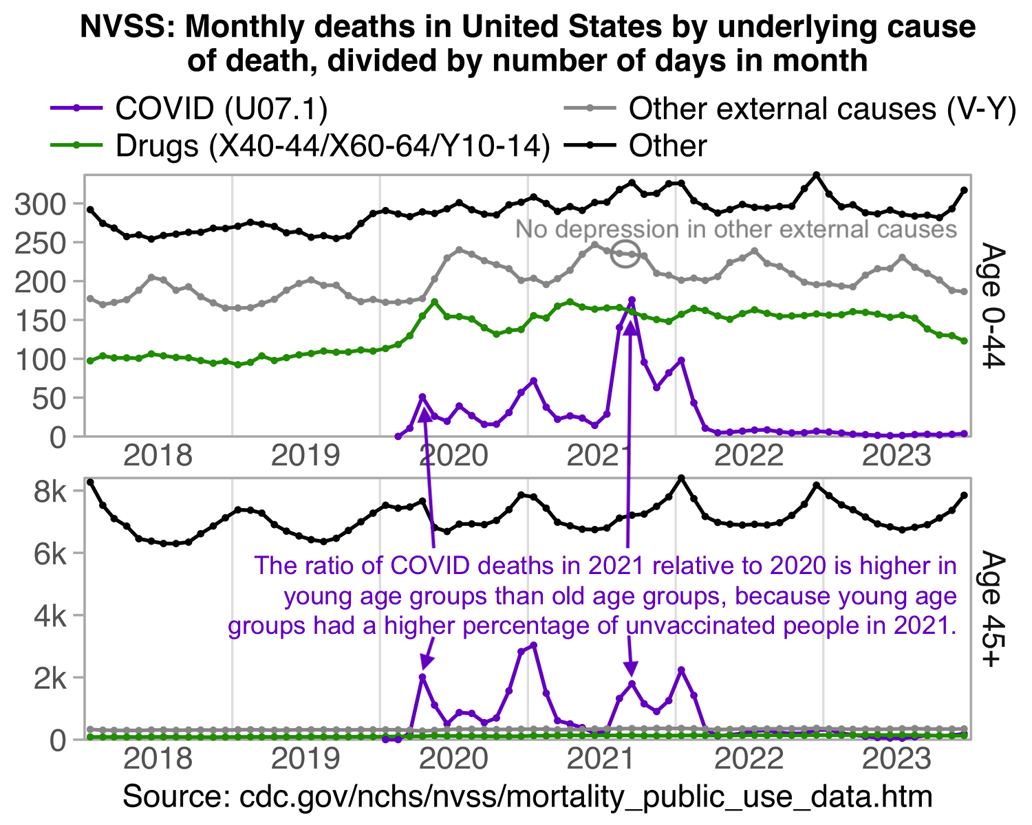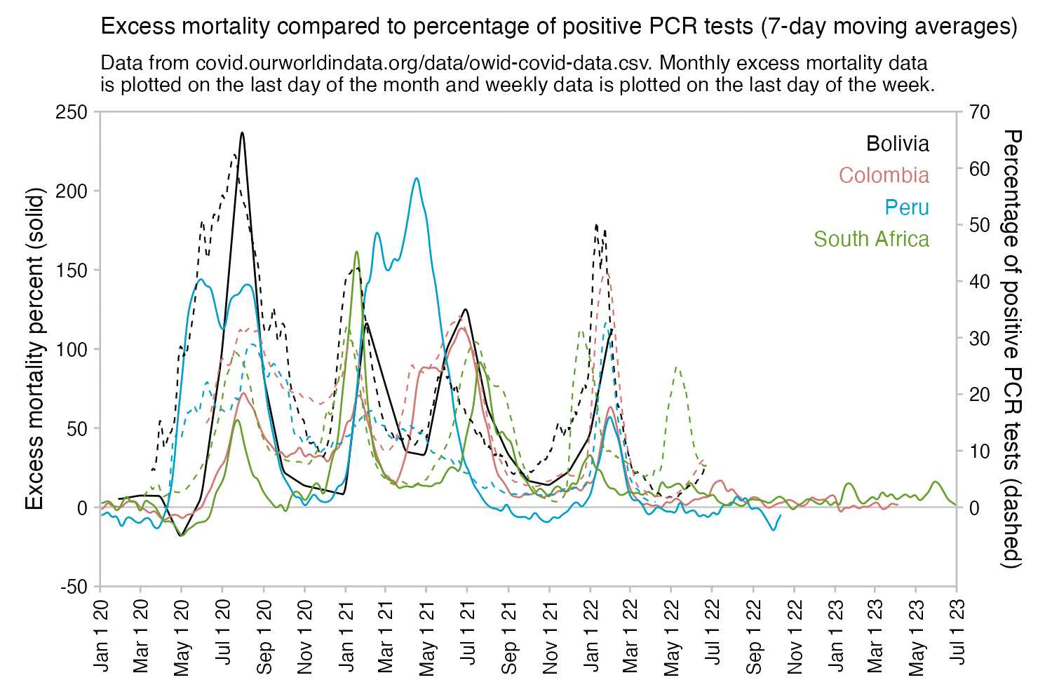 People from the no-pandemic camp have suggested that the deaths attributed to COVID were caused by vaccines, by ventilators, by drugs like Remdesivir or midazolam, by rebranded influenza, by bacterial pneumonia, by reduced prescription of antibiotics, by supplementary oxygen treatment, by psychological stress caused by social isolation (like Denis Rancourt), by heat waves in the summer (like Rancourt), by opioid overdoses (like Mark Kulacz), by some kind of a release of toxins (like Sasha Latypova), or by an aerosol attack of bat vaccines which only contained the spike protein but not the full virus (like Karen Kingston).