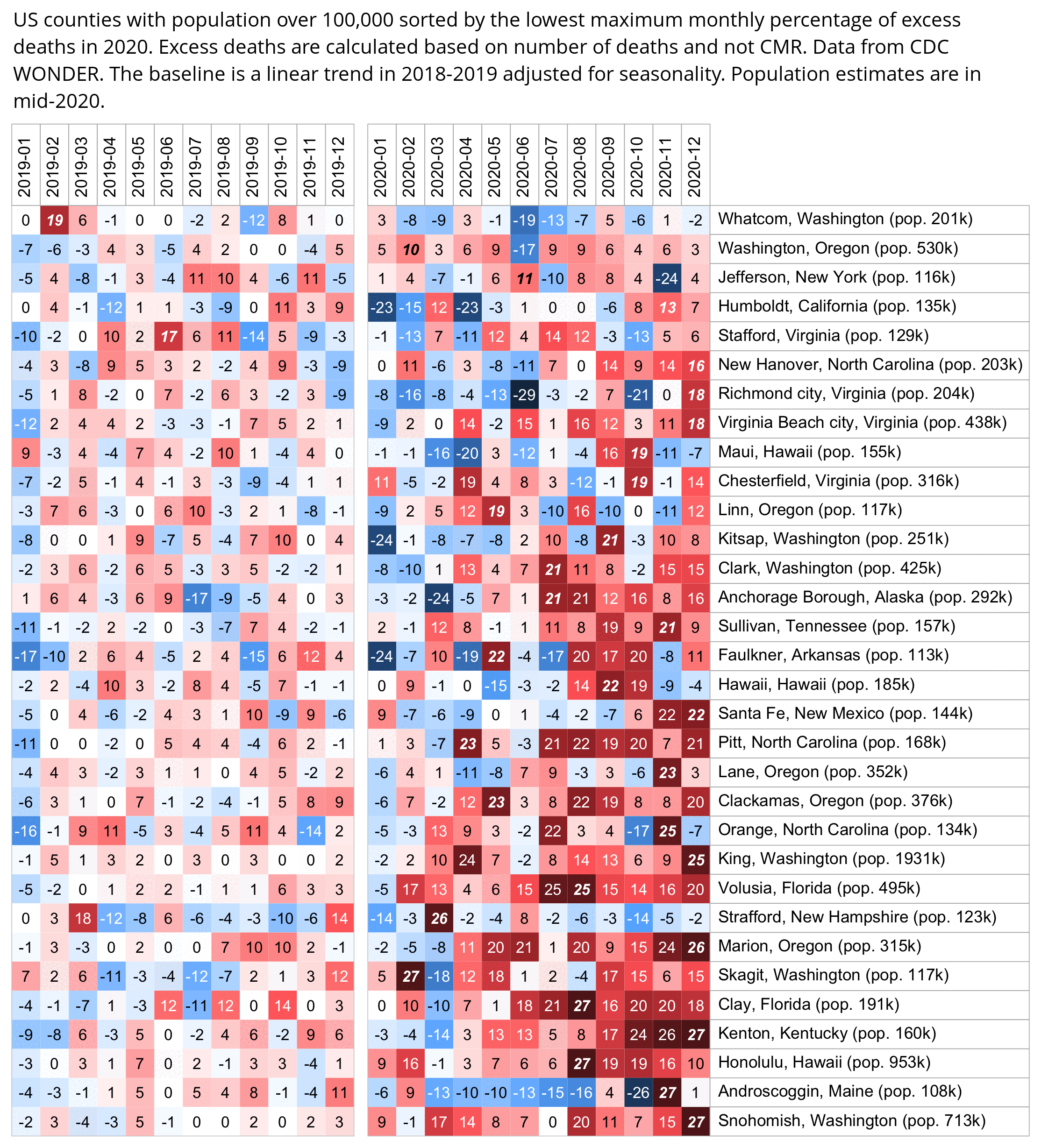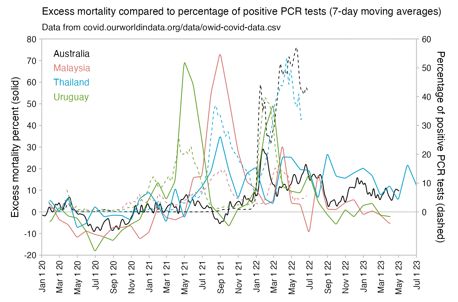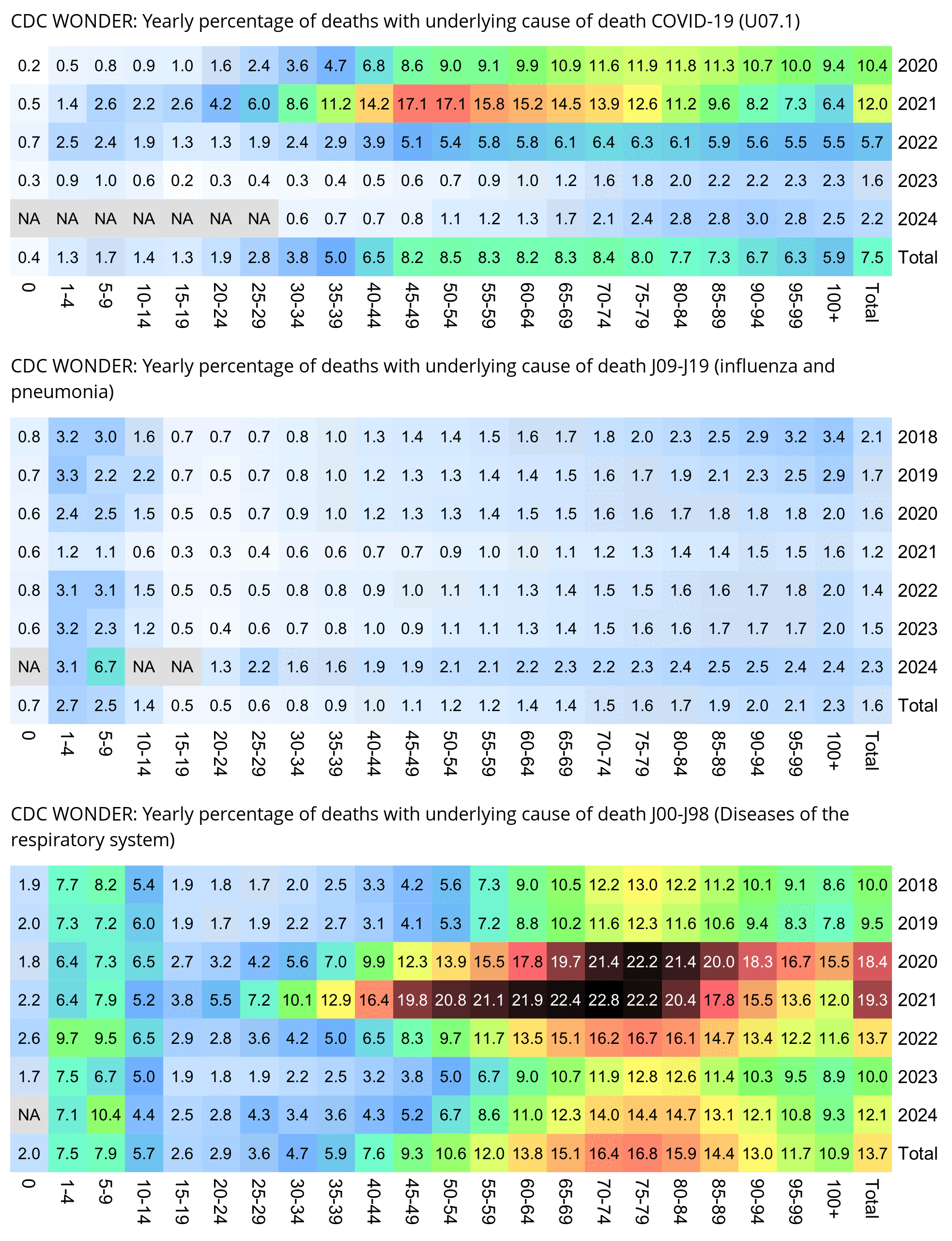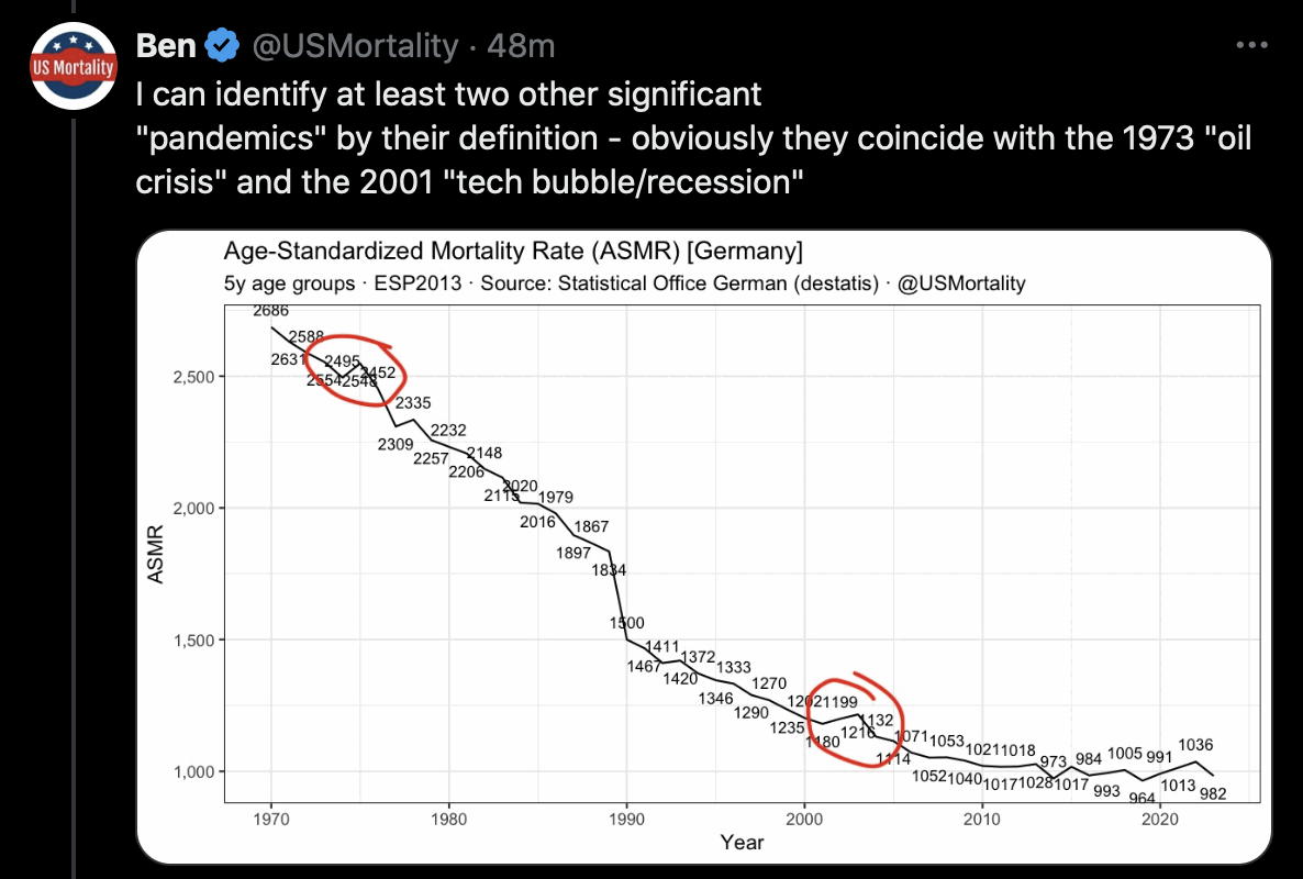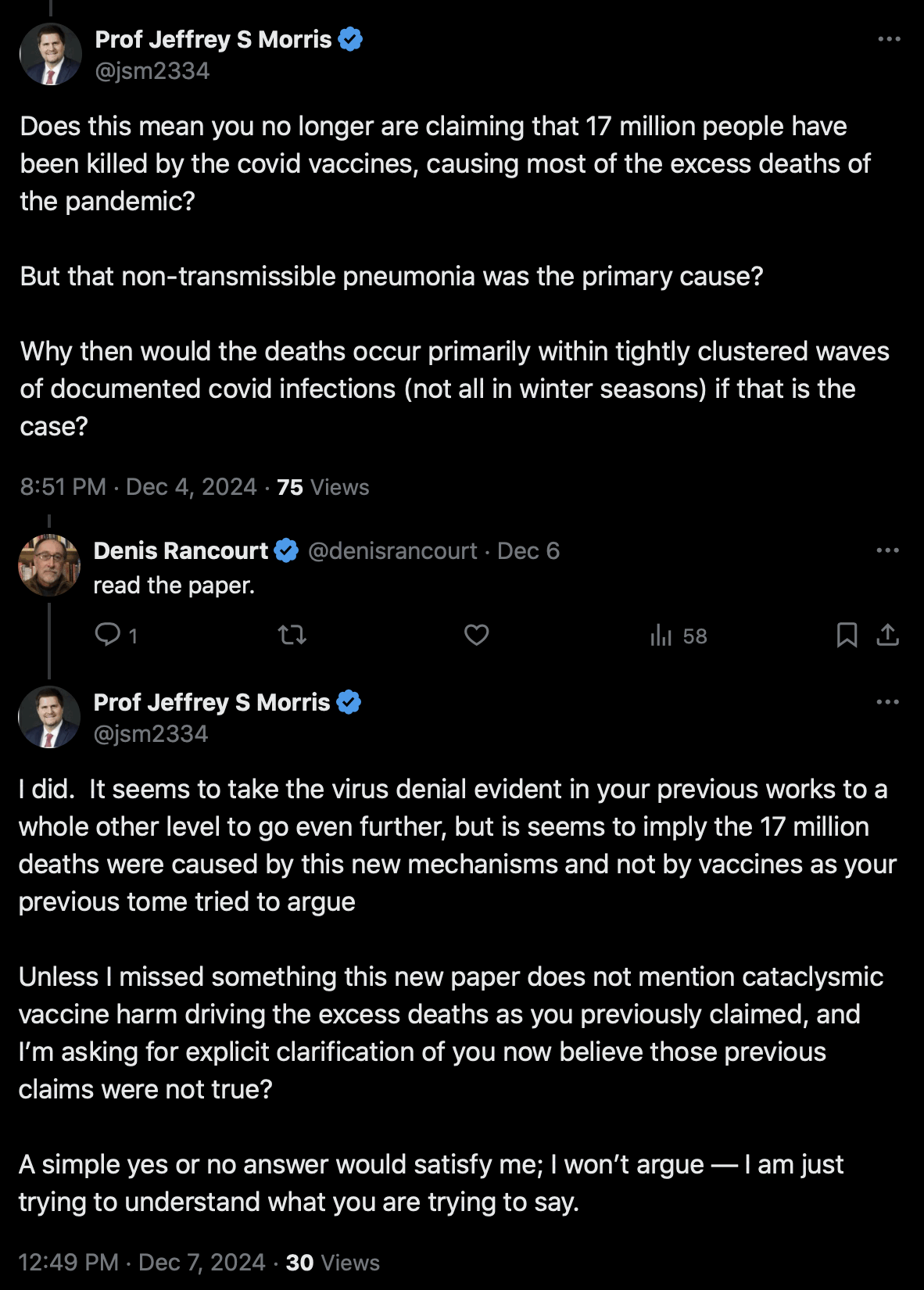 People from the no-pandemic camp have suggested that the deaths attributed to COVID were caused by vaccines, by ventilators, by drugs like Remdesivir or midazolam, by rebranded influenza, by bacterial pneumonia, by reduced prescription of antibiotics, by supplementary oxygen treatment, by psychological stress caused by social isolation (like Denis Rancourt), by heat waves in the summer (like Rancourt), by opioid overdoses (like Mark Kulacz), by some kind of a release of toxins (like Sasha Latypova), or by an aerosol attack of bat vaccines which only contained the spike protein but not the full virus (like Karen Kingston).