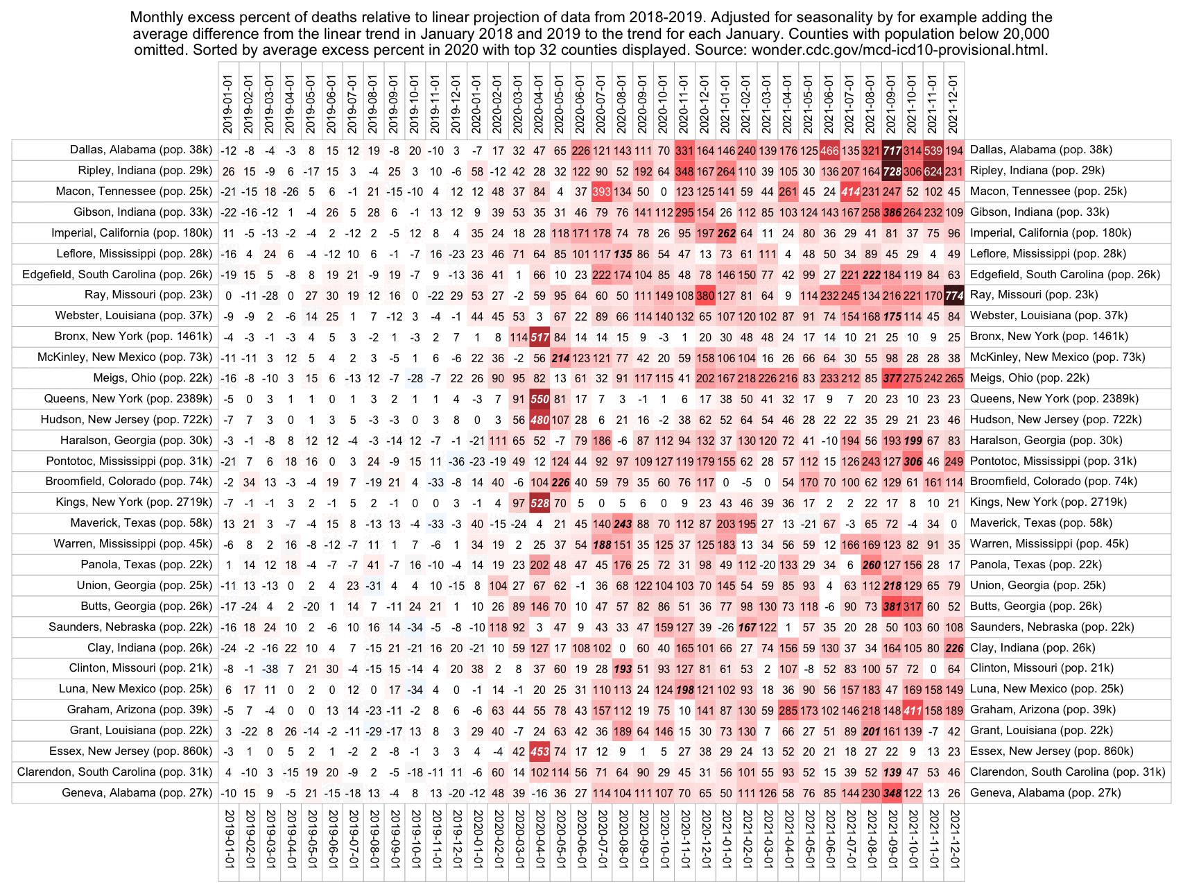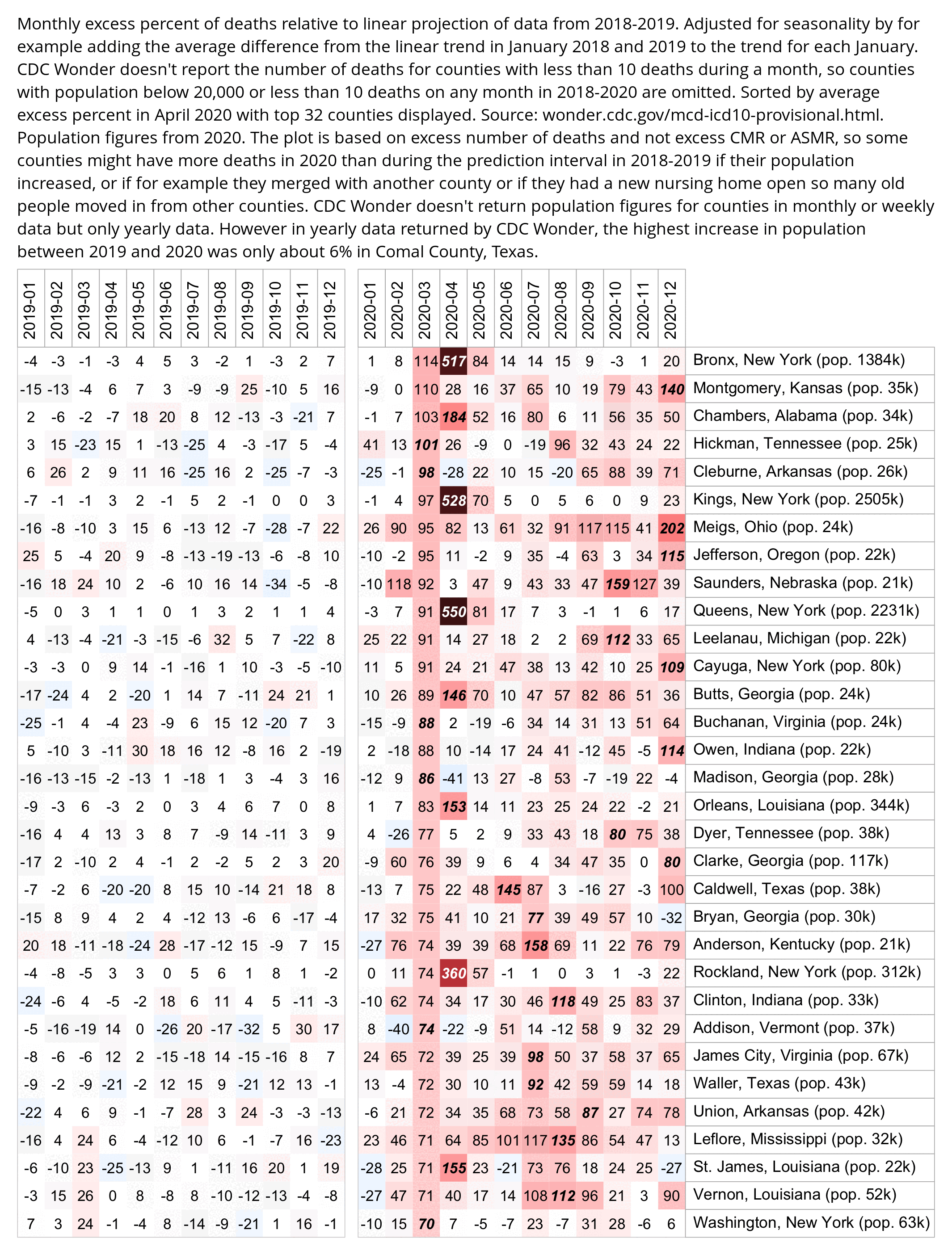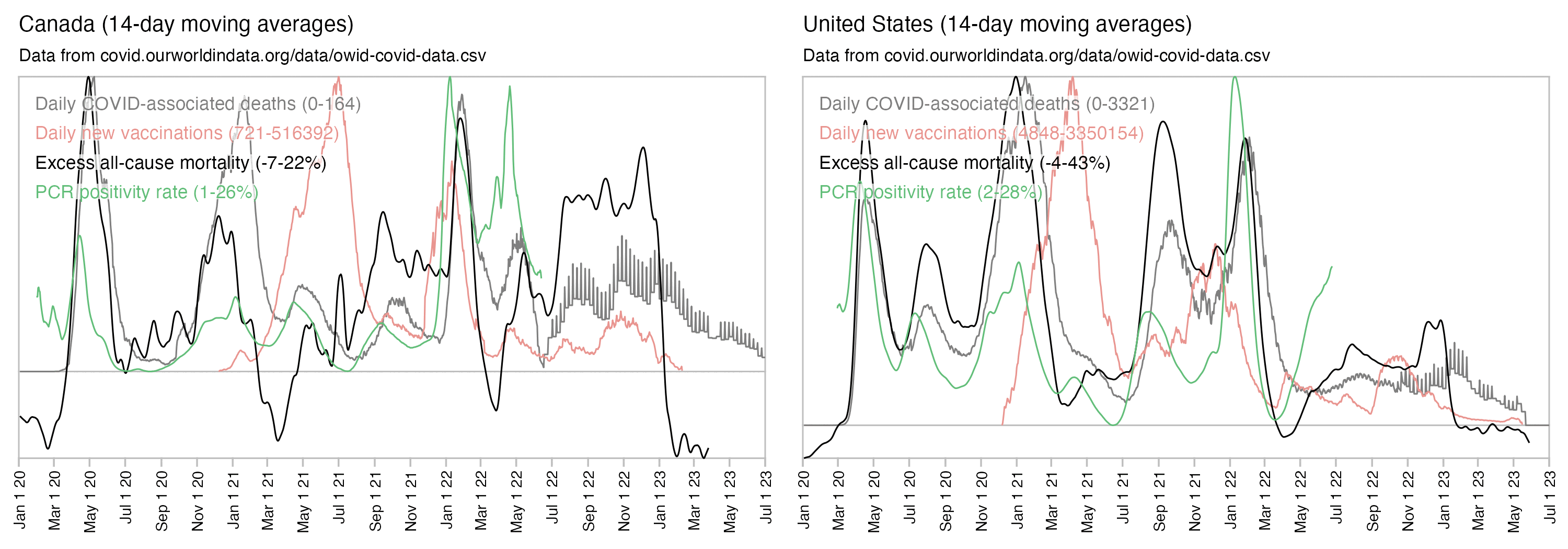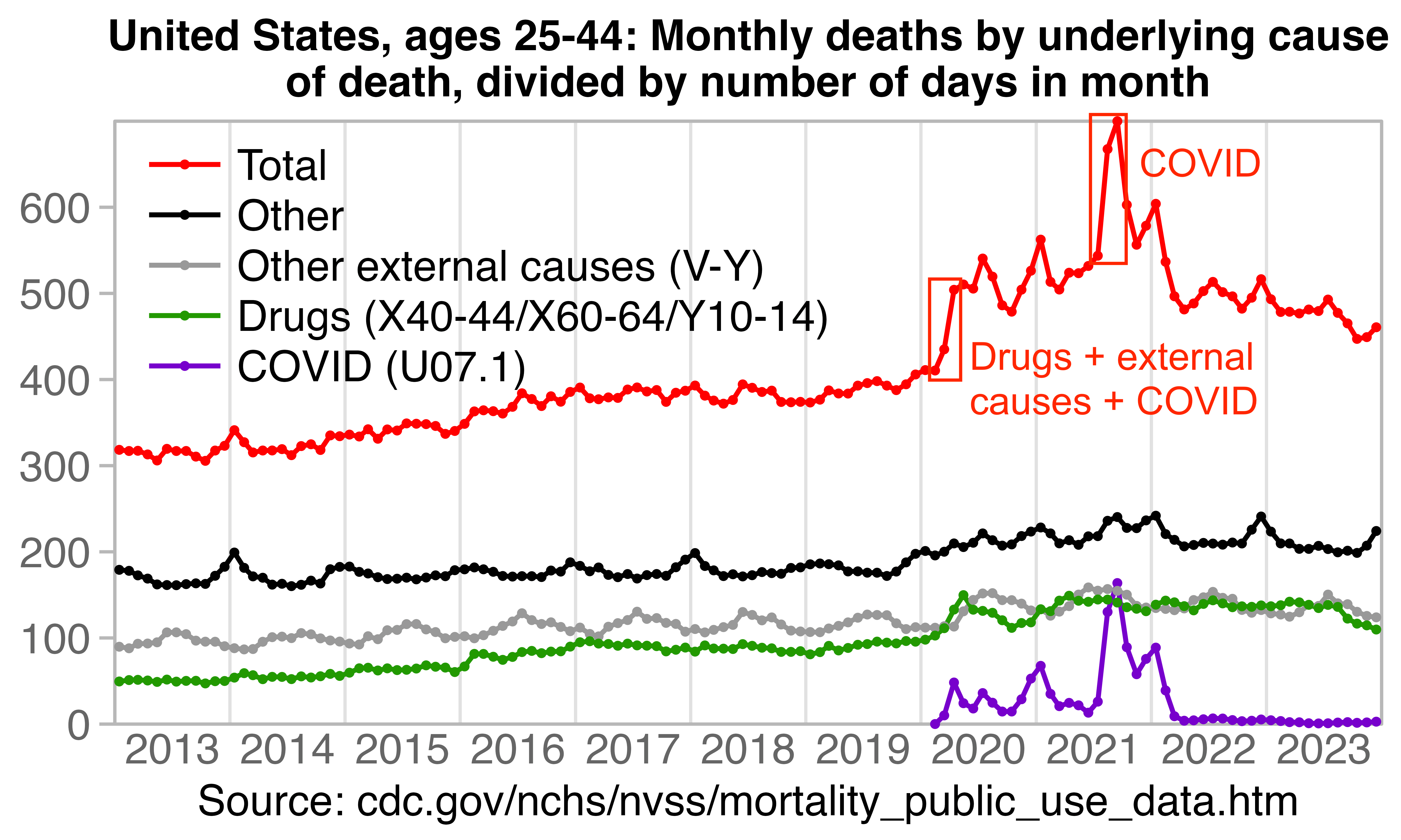 People from the no-pandemic camp have suggested that the deaths attributed to COVID were caused by vaccines, by ventilators, by drugs like Remdesivir or midazolam, by rebranded influenza, by bacterial pneumonia, by reduced prescription of antibiotics, by supplementary oxygen treatment, by psychological stress caused by social isolation (like Denis Rancourt), by heat waves in the summer (like Rancourt), by opioid overdoses (like Mark Kulacz), by some kind of a release of toxins (like Sasha Latypova), or by an aerosol attack of bat vaccines which only contained the spike protein but not the full virus (like Karen Kingston).