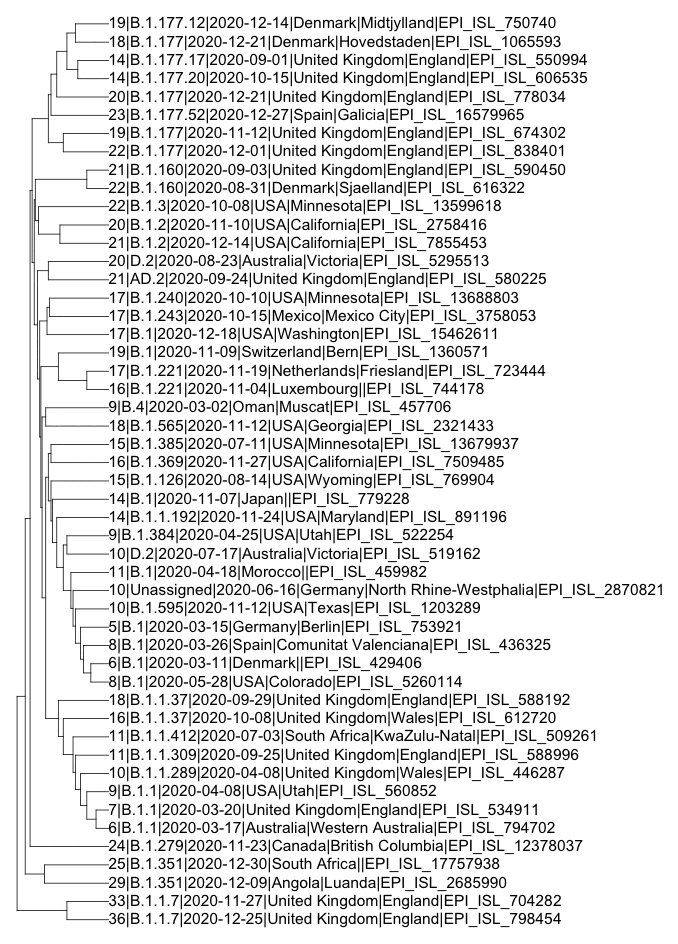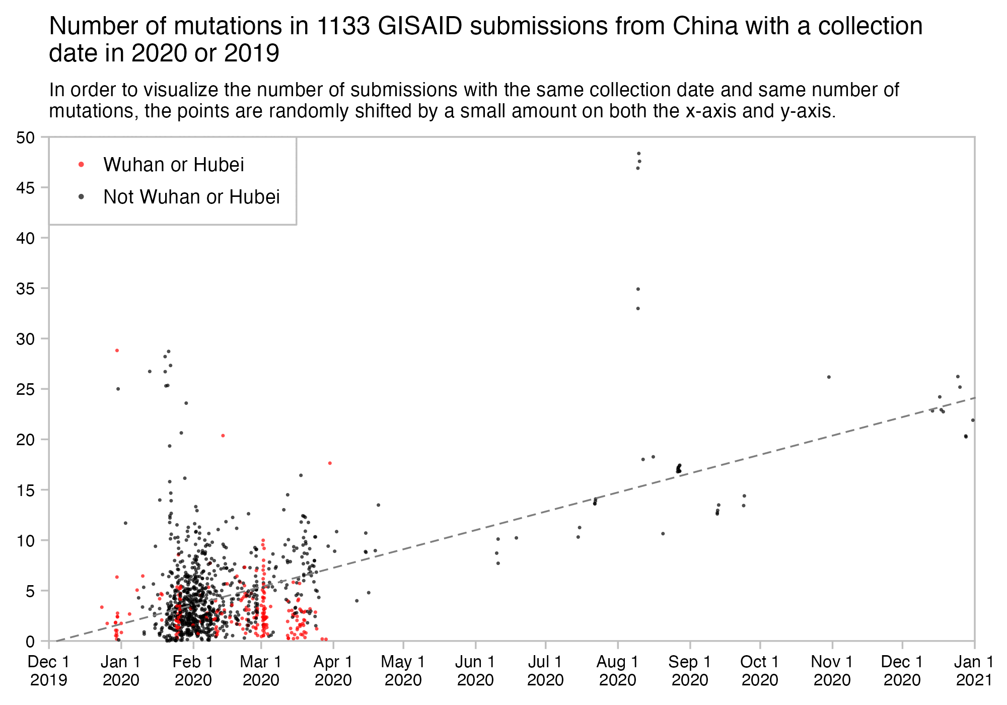 In April 2020, Nextstrain's lead developer Trevor Bedford posted a Twitter thread where he wrote the following: [https://x.com/trvrb/status/1249414295042965504]