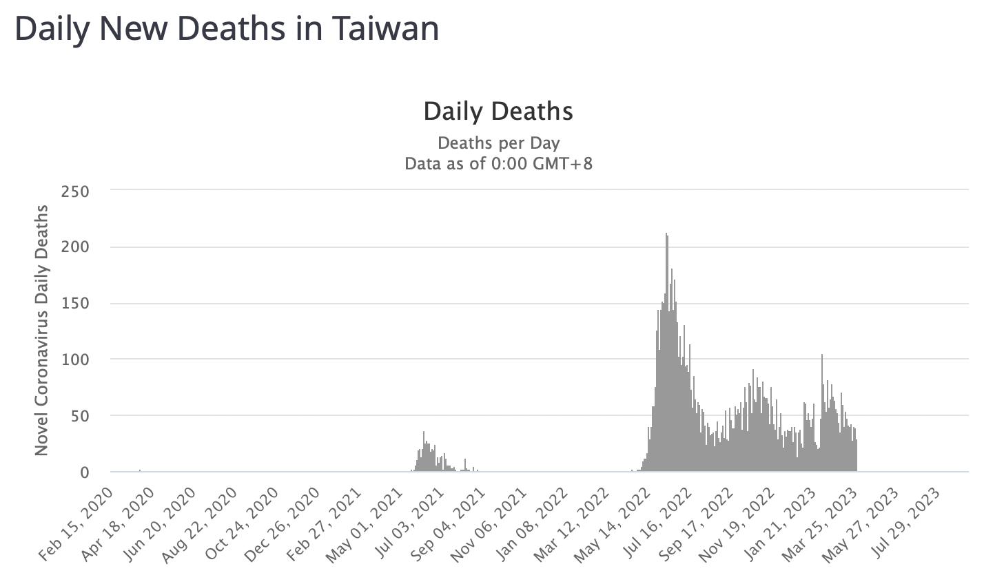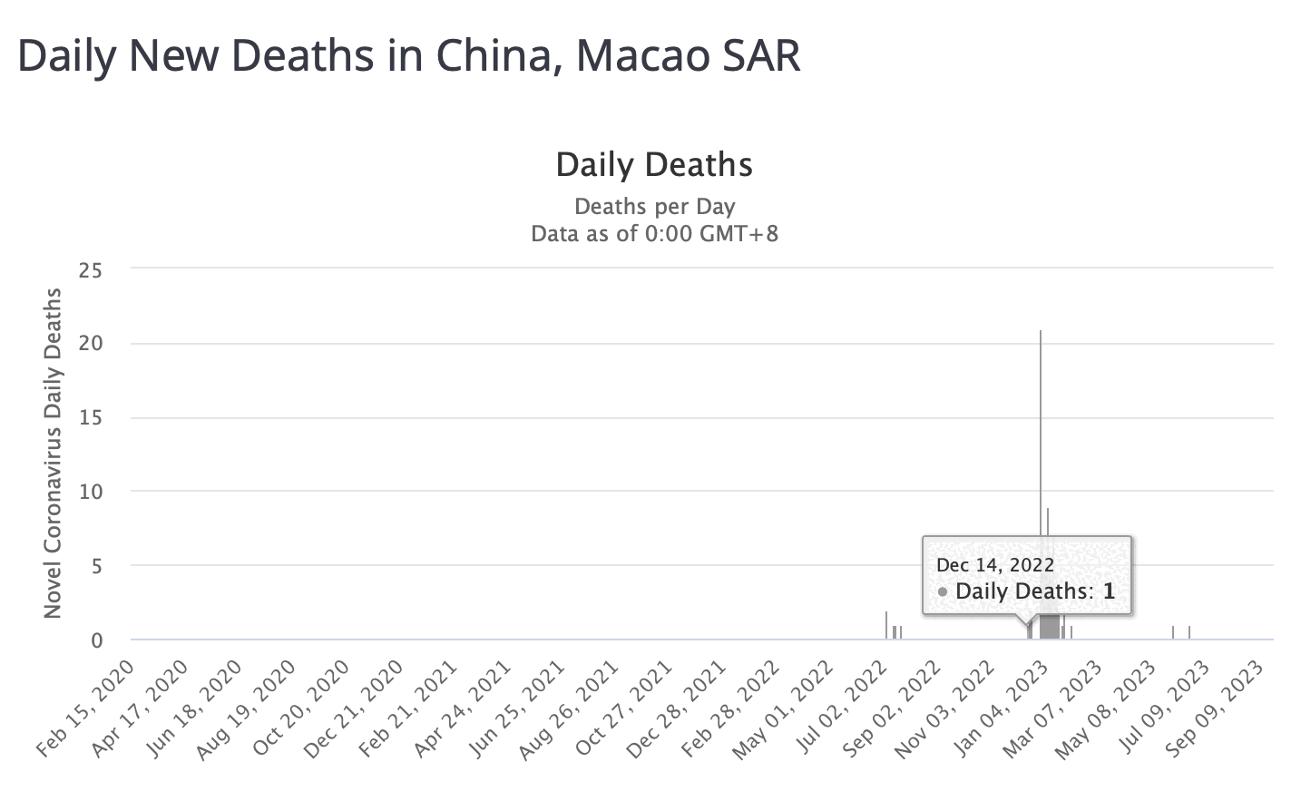 I used the Wayback Machine to look up the source of data that Worldometers used for Hong Kong in March 2022. [http://web.archive.org/web/20220331000040/https://www.worldometers.info/coronavirus/#news] On March 30th 2020 Worldometers added 135 new deaths for Hong Kong, and the source was listed as this dashboard website which is not functional at the Wayback Machine. [https://web.archive.org/web/20220330135151/https://chp-dashboard.geodata.gov.hk/covid-19/zh.html] However I also found data for daily COVID deaths in CSV files published by the Hong Kong government. [https://www.coronavirus.gov.hk/eng/5th-wave-statistics.html] In the CSV files the cumulative number of deaths was listed as 7,358 on March 29th and 7,493 on March 30th, so 7,493 minus 7,358 is 135 which matches the figure at Worldometers.