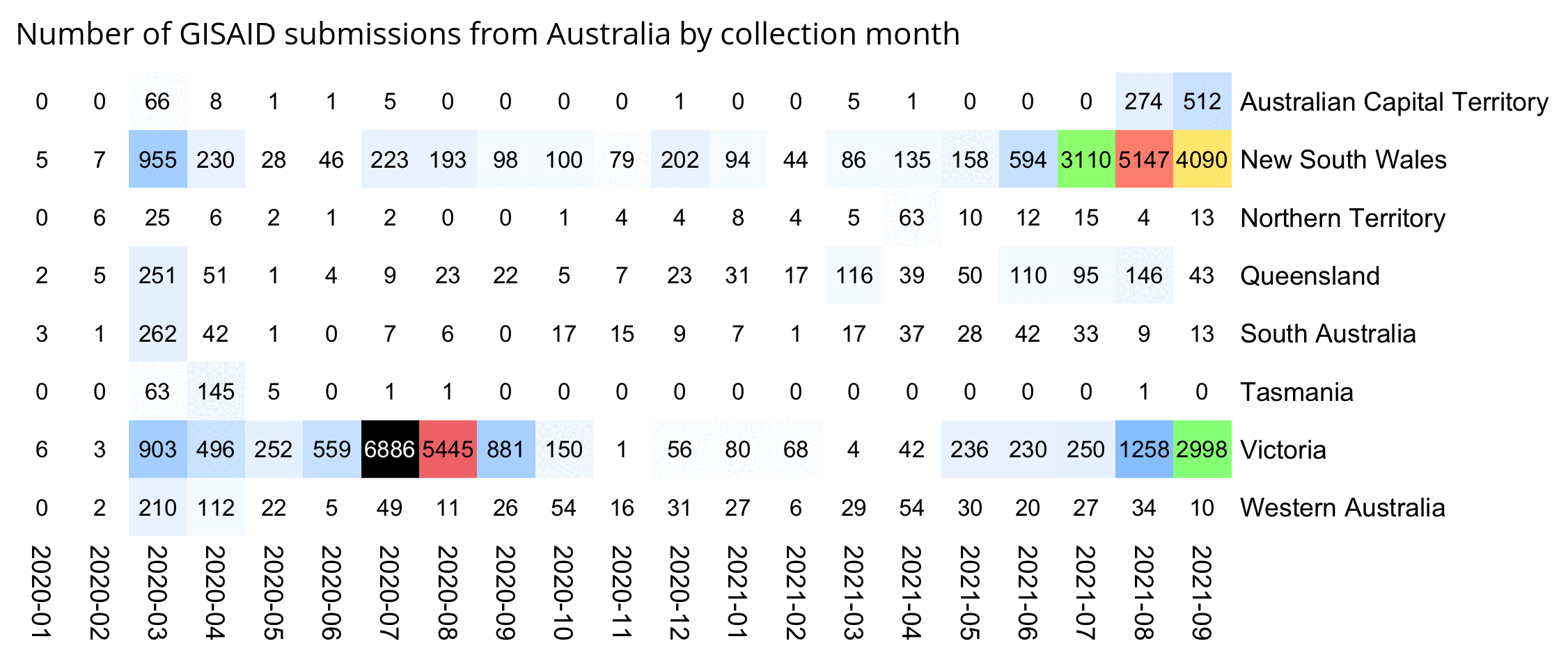$ curl https://sars2.net/f/gisaid2020.tsv.xz|xz -dc>gisaid2020.tsv $ awk -F\\t '$3~"2020-01"&&$10=="Human"' gisaid2020.tsv|cut -f3-8,11-13|tr \\t \| 2020-01-11|2019-12-24|B|China|Hubei|Wuhan|3|A3778G,A8388G,T8987A| 2020-01-30|2019-12-26|B|China|Hubei|Wuhan|2|C6968A,T11764A| 2020-01-10|2019-12-30|B|China|Hubei|Wuhan|0|| 2020-01-10|2019-12-30|B|China|Hubei|Wuhan|2|G20670A,G20679A| 2020-01-11|2019-12-30|B|China|Hubei|Wuhan|0|| 2020-01-18|2019-12-30|B|China|Hubei|Wuhan|2|G21316A,A24325G| 2020-01-18|2019-12-30|B|China|Hubei|Wuhan|2|G7016A,A21137G| 2020-01-18|2019-12-30|B|China|Hubei|Wuhan|0|| 2020-01-18|2019-12-30|B|China|Hubei|Wuhan|2|A8001C,C9534T| 2020-01-19|2019-12-30|B|China|Hubei|Wuhan|1|T21656A| 2020-01-21|2019-12-30|B|China|Hubei|Wuhan|0|| 2020-01-21|2019-12-30|B|China|Hubei|Wuhan|1|T6996C| 2020-01-21|2019-12-30|B|China|Hubei|Wuhan|6|T104A,T111C,T112G,C119G,T120C,G124A| 2020-01-12|2019-12-31|B|China|||0|| 2020-01-30|2019-12-31|Unassigned|China|Wuhan||25|C344T,T445A,G1167C,G2408T,C2881A,G4127T,A4426C,T6000A,C6593T,A6948G,C8320T,T10061C,T10062G,G10610T,G12311T,C12318G,G12332T,G12338C,G12345T,T12346G,G13445C,A14052T,T14073A,C23730T,T25535A|20618-20622,26170-26182 2020-01-11|2020-01-01|B|China|Hubei|Wuhan|2|C27493T,C28253T| 2020-01-21|2020-01-01|B|China|Hubei|Wuhan|1|G7866T| 2020-01-30|2020-01-01|B|China|Hubei|Wuhan|0|| 2020-01-23|2020-01-02|B|China|Hubei|Wuhan|0|| 2020-01-23|2020-01-02|B|China|Hubei|Wuhan|0|| 2020-01-30|2020-01-05|A|China|Hubei|Wuhan|3|C16T,C8782T,T28144C| 2020-01-17|2020-01-08|B|Thailand|Nonthaburi||0|| 2020-01-24|2020-01-10|A|China|Guangdong|Shenzhen|3|C8782T,T28144C,C29095T| 2020-01-24|2020-01-11|A|China|Guangdong|Shenzhen|5|C8782T,C9561T,T15607C,T28144C,C29095T| 2020-01-17|2020-01-13|B|Thailand|Nonthaburi||0|| 2020-01-29|2020-01-13|A|China|Guangdong|Shenzhen|27|C1648T,T2169C,A3801C,A4644G,G4656C,G4728T,T4729A,T4739C,T5464C,A6308G,C6786G,T6834G,A6838G,T8091A,T8455C,T12597A,T15636A,C19269T,T20315A,G24947C,A25347G,A26108T,A26141T,G26755C,A26759T,T28144C,C29095T| 2020-01-29|2020-01-13|A|China|Guangdong|Shenzhen|3|C8782T,T28144C,C29095T| 2020-01-16|2020-01-14|Unassigned|Japan|Kanagawa||0|| 2020-01-22|2020-01-14|A|China|Guangdong|Shenzhen|3|C8782T,T28144C,C29095T| 2020-01-22|2020-01-15|A|China|Guangdong|Shenzhen|3|C8782T,T28144C,C29095T| 2020-01-22|2020-01-15|B|China|Guangdong|Shenzhen|1|T23569C| 2020-01-22|2020-01-15|A|China|Guangdong|Shenzhen|3|C8782T,T28144C,C29095T| 2020-01-21|2020-01-16|B|China|Zhejiang||2|A31G,C583T| 2020-01-29|2020-01-16|B|China|Guangdong|Shenzhen|2|C27577T,C28854T| 2020-01-29|2020-01-16|B|China|Guangdong|Shenzhen|9|G709A,T6846C,A11707G,A19959C,A22622G,G22652T,T23569C,T25645C,C28716T| 2020-01-22|2020-01-17|B|China|Guangdong|Zhuhai|1|C21707T| 2020-01-21|2020-01-17|B|China|Zhejiang||0|| 2020-01-22|2020-01-18|B|China|Guangdong|Zhuhai|1|C21707T| 2020-01-24|2020-01-19|A|USA|Washington|Snohomish County|3|C8782T,C18060T,T28144C| 2020-01-25|2020-01-21|B|USA|Illinois|Chicago|0|| 2020-01-27|2020-01-22|B|USA|California|Orange County|2|C17000T,G26144T| 2020-01-28|2020-01-22|A|USA|Arizona|Phoenix County|4|C8782T,G11083T,T28144C,C29095T| 2020-01-29|2020-01-22|B|China|Guangdong|Zhuhai|1|C21707T| 2020-01-29|2020-01-22|B|China|Guangdong|Guangzhou|2|C15324T,C29303T| 2020-01-29|2020-01-22|B|China|Guangdong|Foshan|2|C28291T,C28854T| 2020-01-29|2020-01-22|B|China|Guangdong|Foshan|1|C17373T| 2020-01-29|2020-01-22|B|China|Guangdong|Foshan|1|C17373T| 2020-01-27|2020-01-23|B|Taiwan|Kaohsiung||4|G16188T,A25964G,G26144T,A29877T| 2020-01-27|2020-01-23|A|USA|California|Los Angeles County|7|G1548A,C8782T,C24034T,T26729C,G28077C,T28144C,A28792T| 2020-01-29|2020-01-23|B|China|Guangdong||0|| 2020-01-29|2020-01-23|B|France|Île-de-France|Paris|2|G22661T,G26144T| 2020-01-29|2020-01-23|B|France|Île-de-France|Paris|2|G22661T,G26144T| 2020-01-31|2020-01-25|B|Australia|Victoria|Clayton|3|T19065C,T22303G,G26144T|29750-29759 2020-01-31|2020-01-28|B.1|Germany|Bavaria|Munich|3|C241T,C3037T,A23403G|