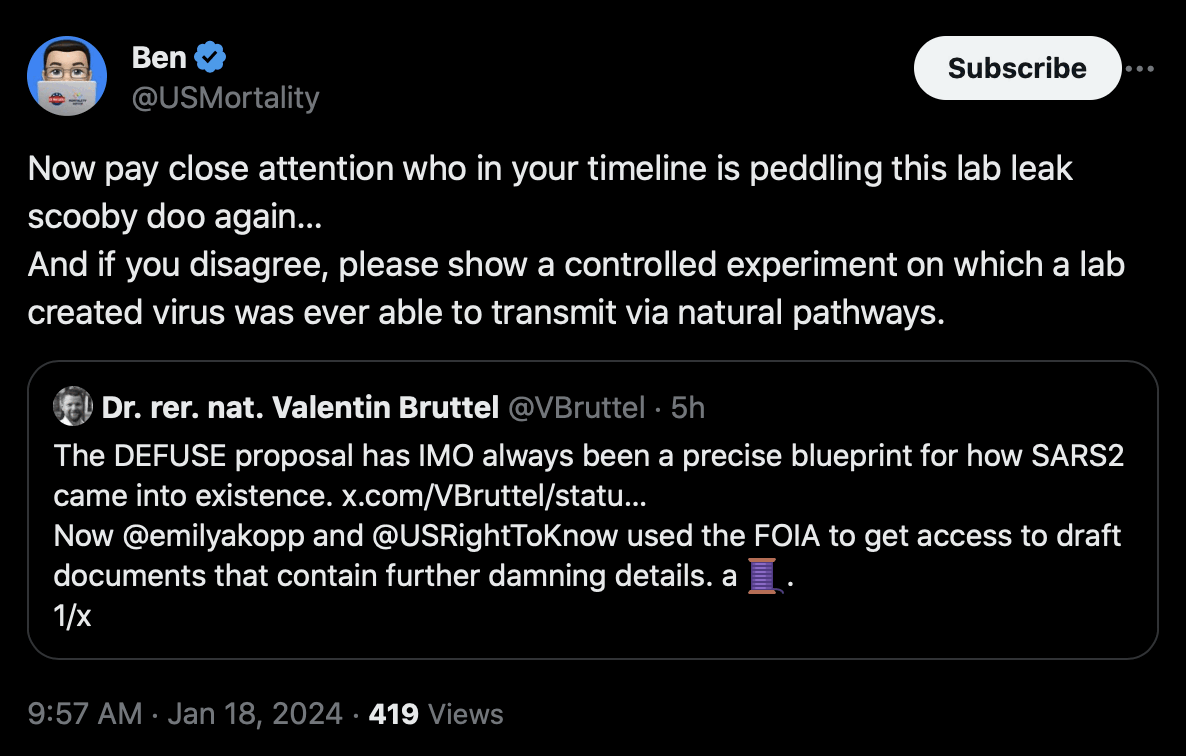 Martin Neil and Jonathan Engler wrote: [https://wherearethenumbers.substack.com/p/virus-origins-and-gain-claim-of-function]