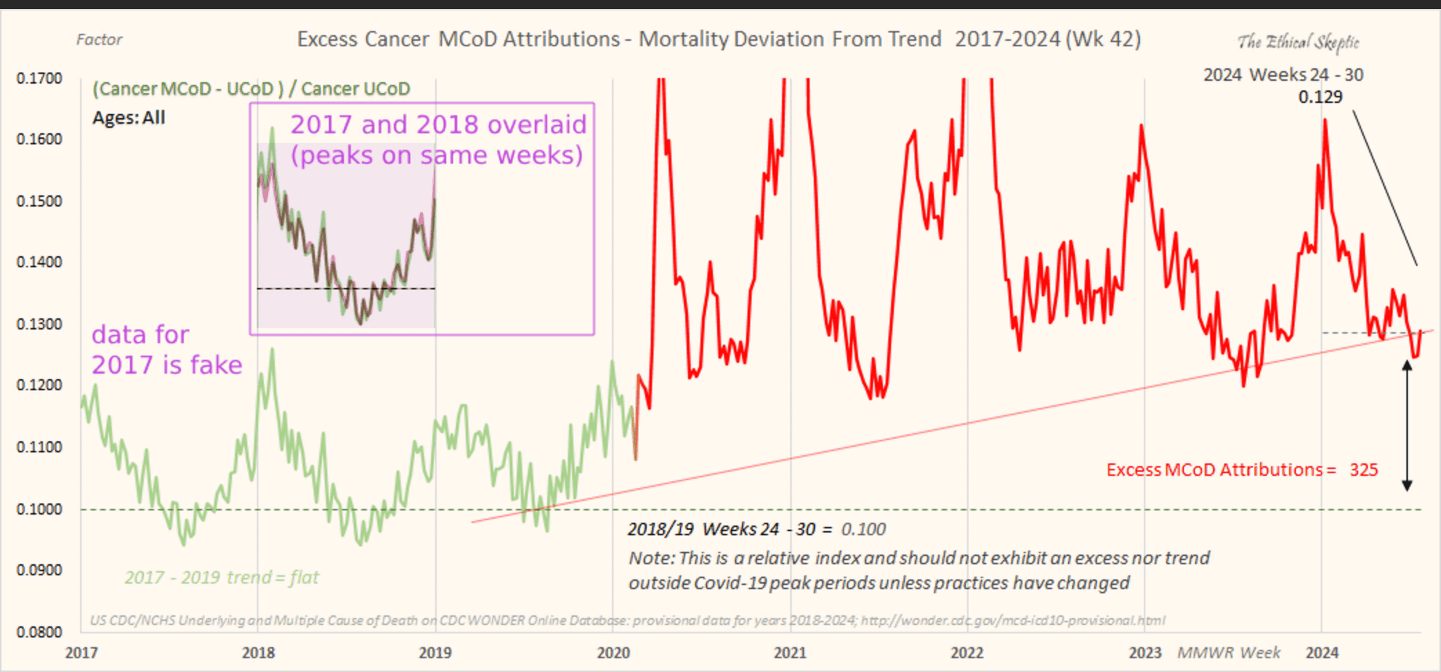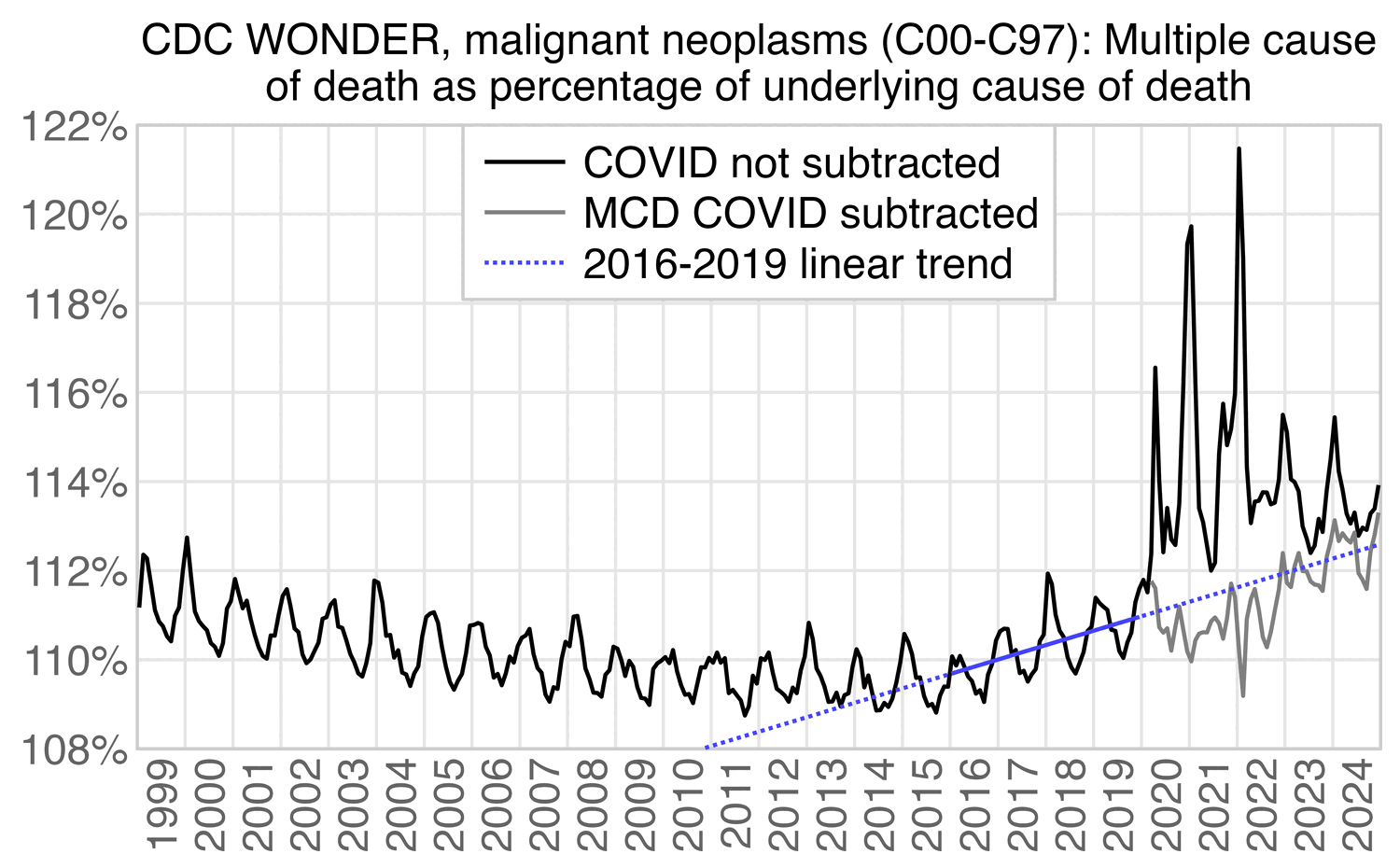 But anyway, the subset of people who were included in his Medicare spreadsheet had almost no increase in deaths during the Delta wave: