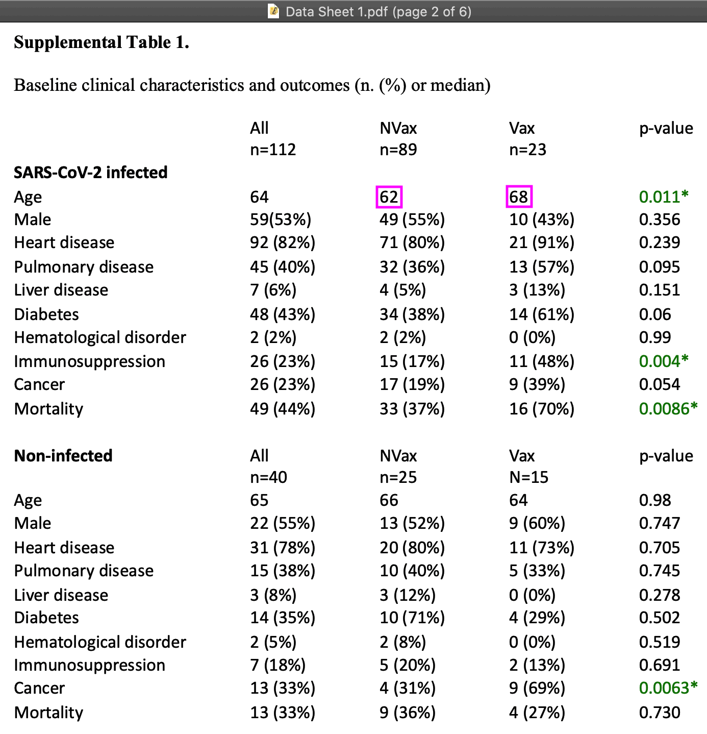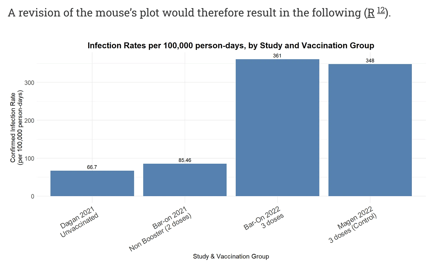 The paper he linked is behind a paywall and not at Sci-Hub or Researchgate so I wasn't able to read it: https://www.scienceopen.com/document?vid=c46d3b29-4916-4e80-883f-c095035db6dc. However the abstract says that "there was no difference in risk by vaccination status" (which might mean that there was some risk but it was not significant): "To understand how coronavirus disease 2019 vaccines impact infection risk in children <5 years, we assessed risk of severe acute respiratory syndrome coronavirus 2 (SARS-CoV-2) infection from September 2022 to April 2023 in 3 cohort studies. There was no difference in risk by vaccination status. While vaccines reduce severe disease, they may not reduce SARS-CoV-2 infections in naïve young children."