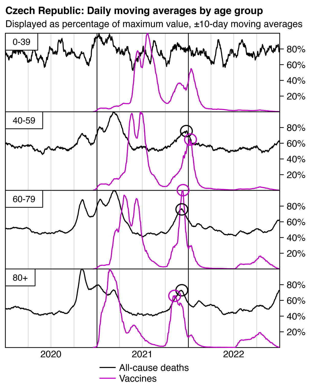 How do you know the increase was in vaccinated people? In the Czech Republic the Delta wave only peaked around November to December 2021. But if you look at ages 40-59, vaccinated people had almost no increase in ASMR during the Delta wave, but the ASMR of unvaccinated people almost doubled between September 2021 and the Delta peak: http://sars2.net/czech.html#Daily_deaths_and_vaccine_doses_by_age_group.