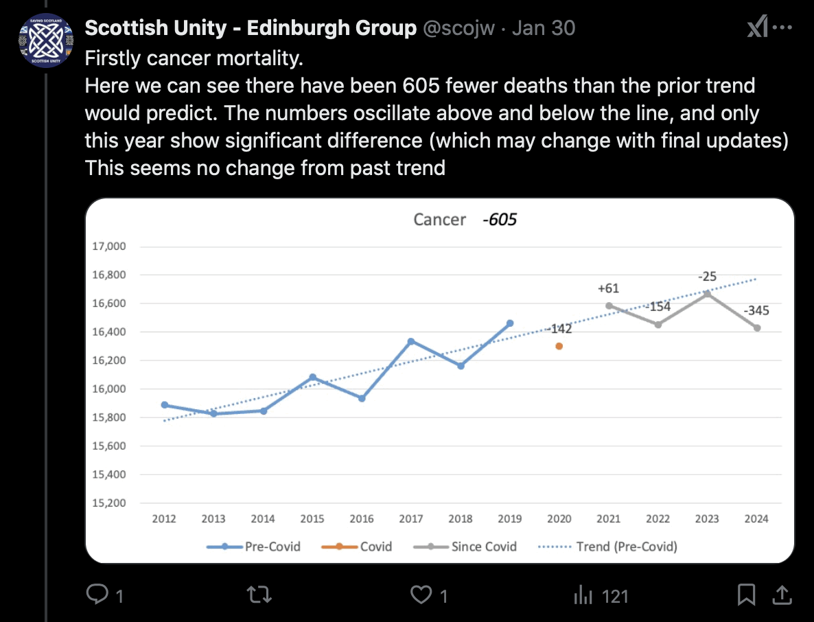 He linked to a response by the UK Office for Statistics Regulation which said: "In your paper you also state that the number of deaths reported within the first 21 days of receiving the first dose of the Covid-19 vaccination is below that which could be expected in the general population, and that this difference is evidence of systematic undercounting of deaths by ONS. Our view of this question starts with the consideration that the population included is not representative of the general population, and it is therefore likely that any pattern you observe is attributable to the 'healthy vaccinee' effect. This happens when people who are ill (either due to COVID-19 or another relevant illness) are likely to delay vaccination. The result of this effect is a lower-than-average mortality rate within the first 21 days of receiving a vaccination. This effect is described by ONS in their Deaths by Vaccination Status publication."