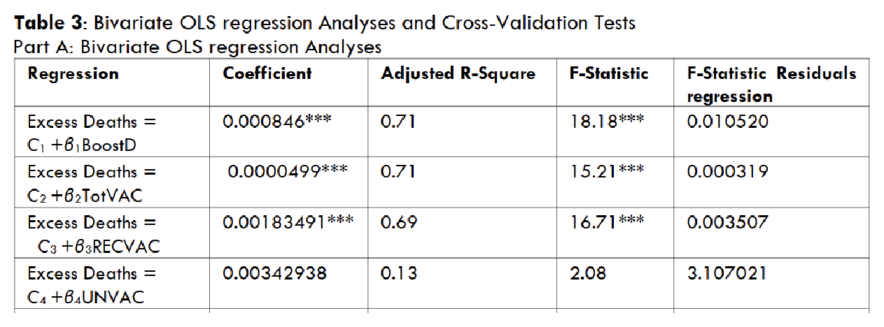 Allen (2024), an Australian study looking at correlation between vaccination and excess deaths, Table 3 summarizes the entire argument: more vaccines → more deaths. If the vaccine worked the coefficients should have been negative.