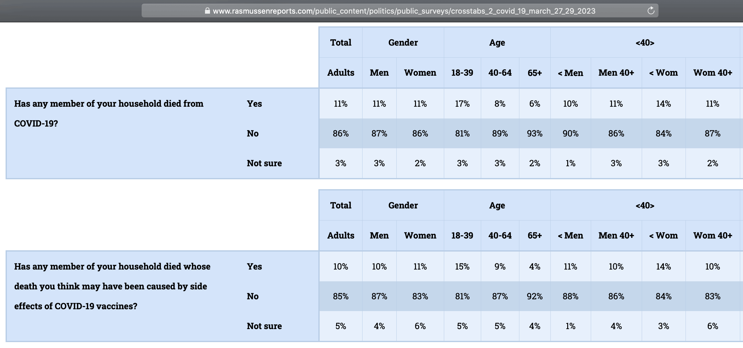 The survey is supposed to have been administered in December 2023, so it's unusual that only 45% of the respondents reported being vaccinated (409 out of 913).