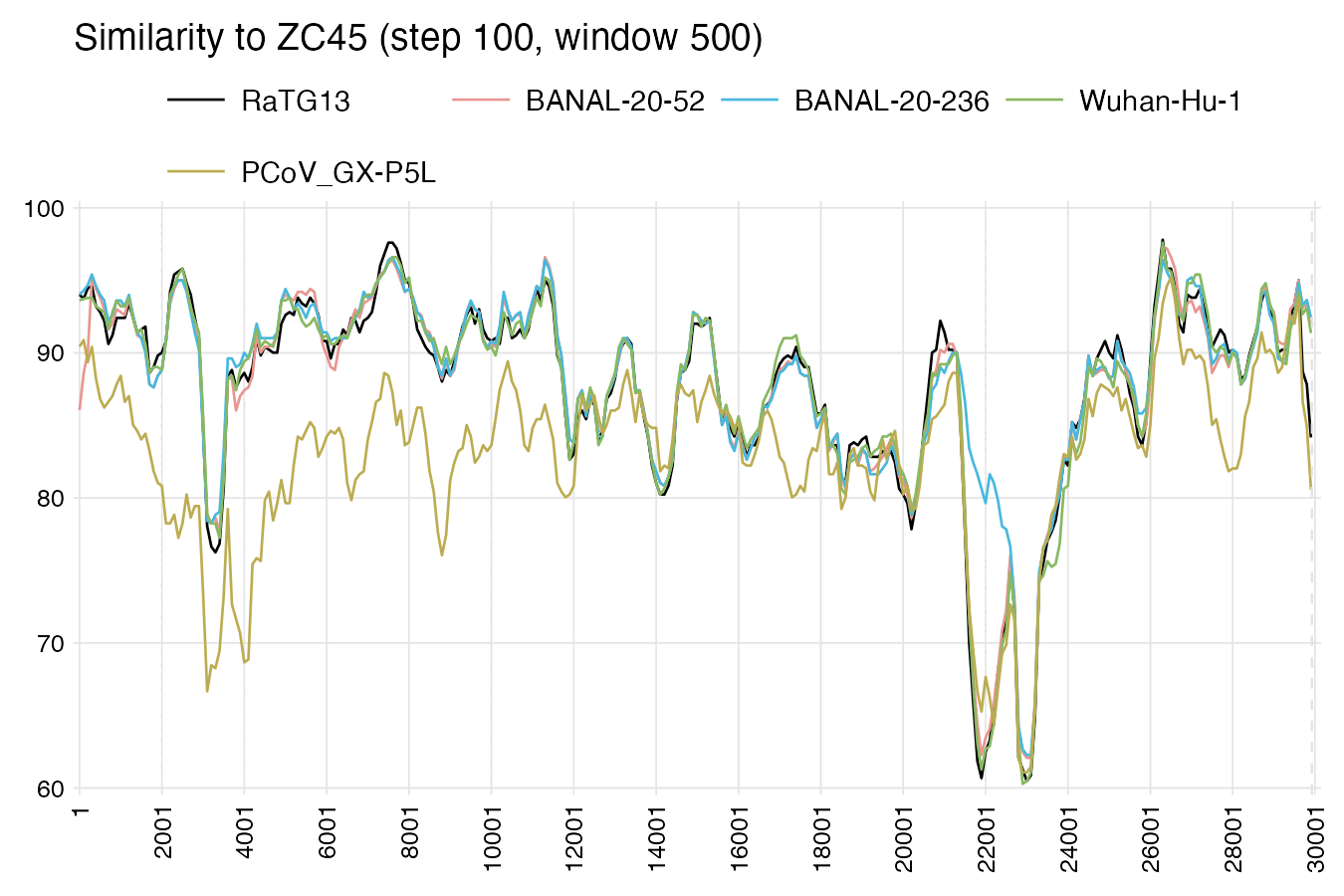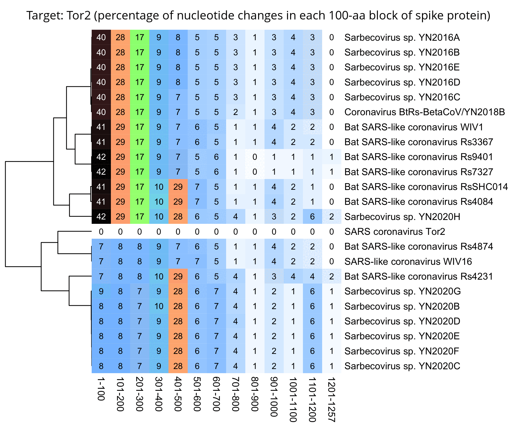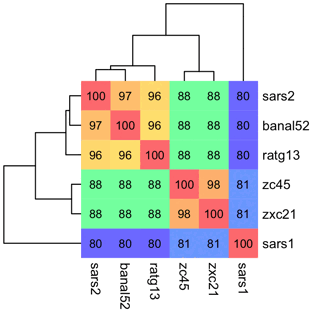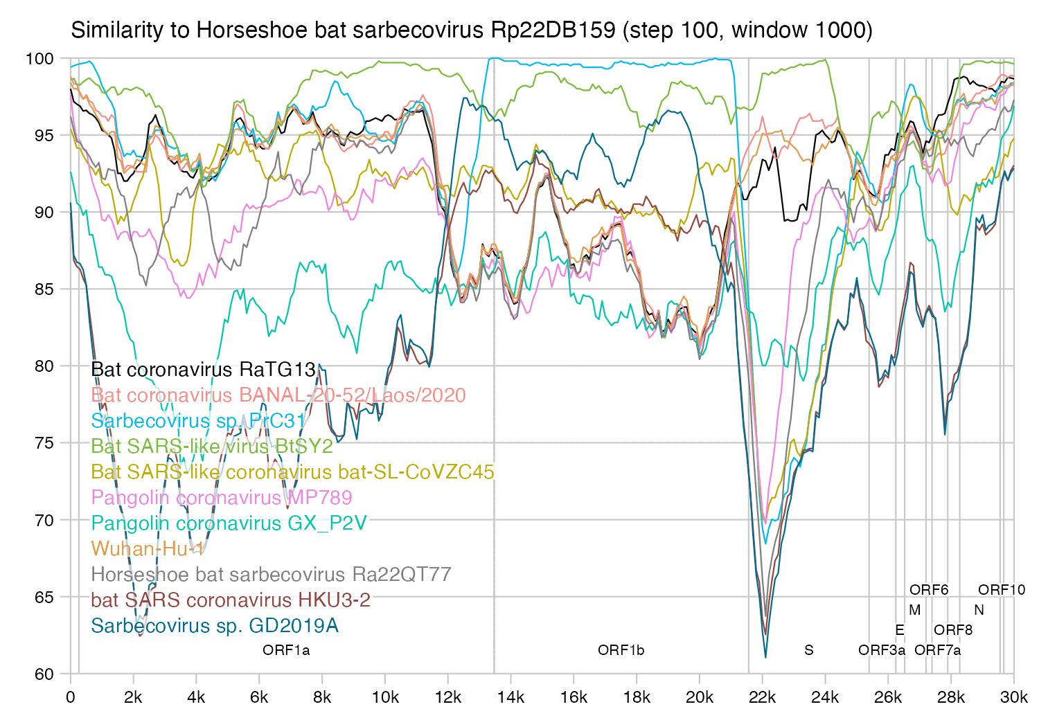 Here you can see that SARS2 has about 80% identity with SARS1 and about 97% identity with BANAL-52: