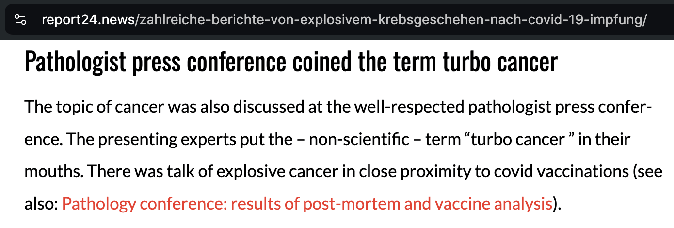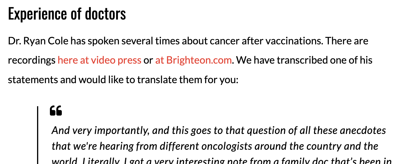 So it's interesting that two weeks after the term "turbo cancer" was coined by Germans, a German article about turbo cancer was already quoting Ryan Cole as an expert on turbo cancer.
