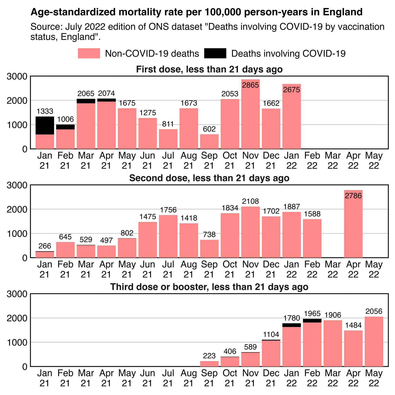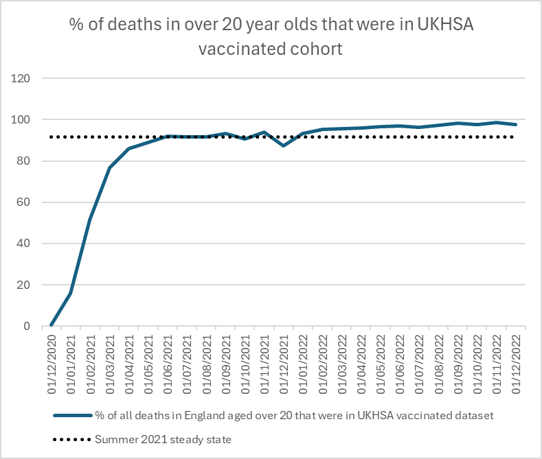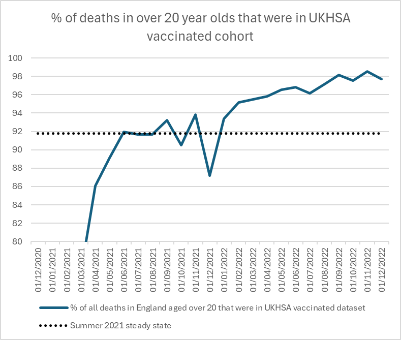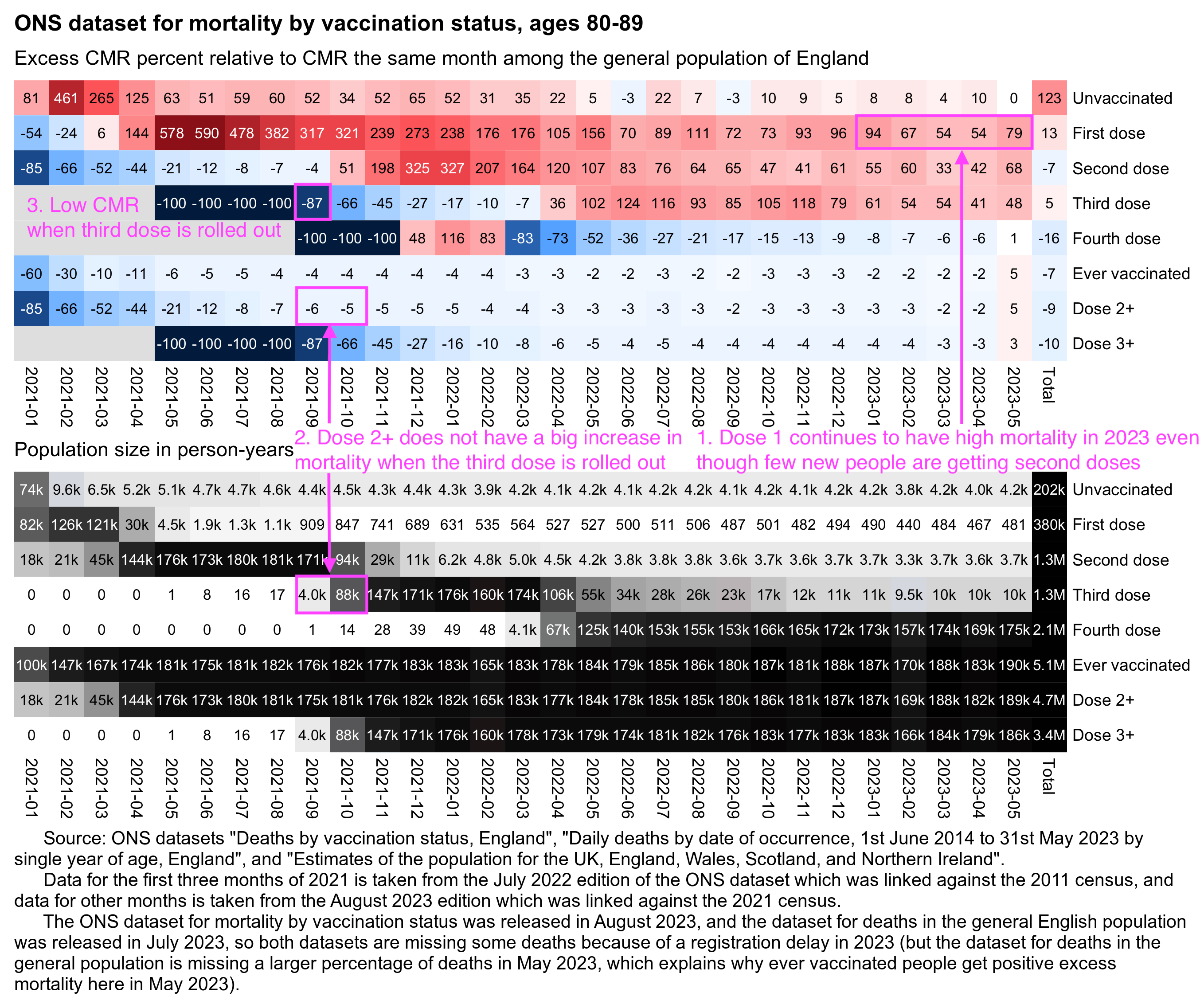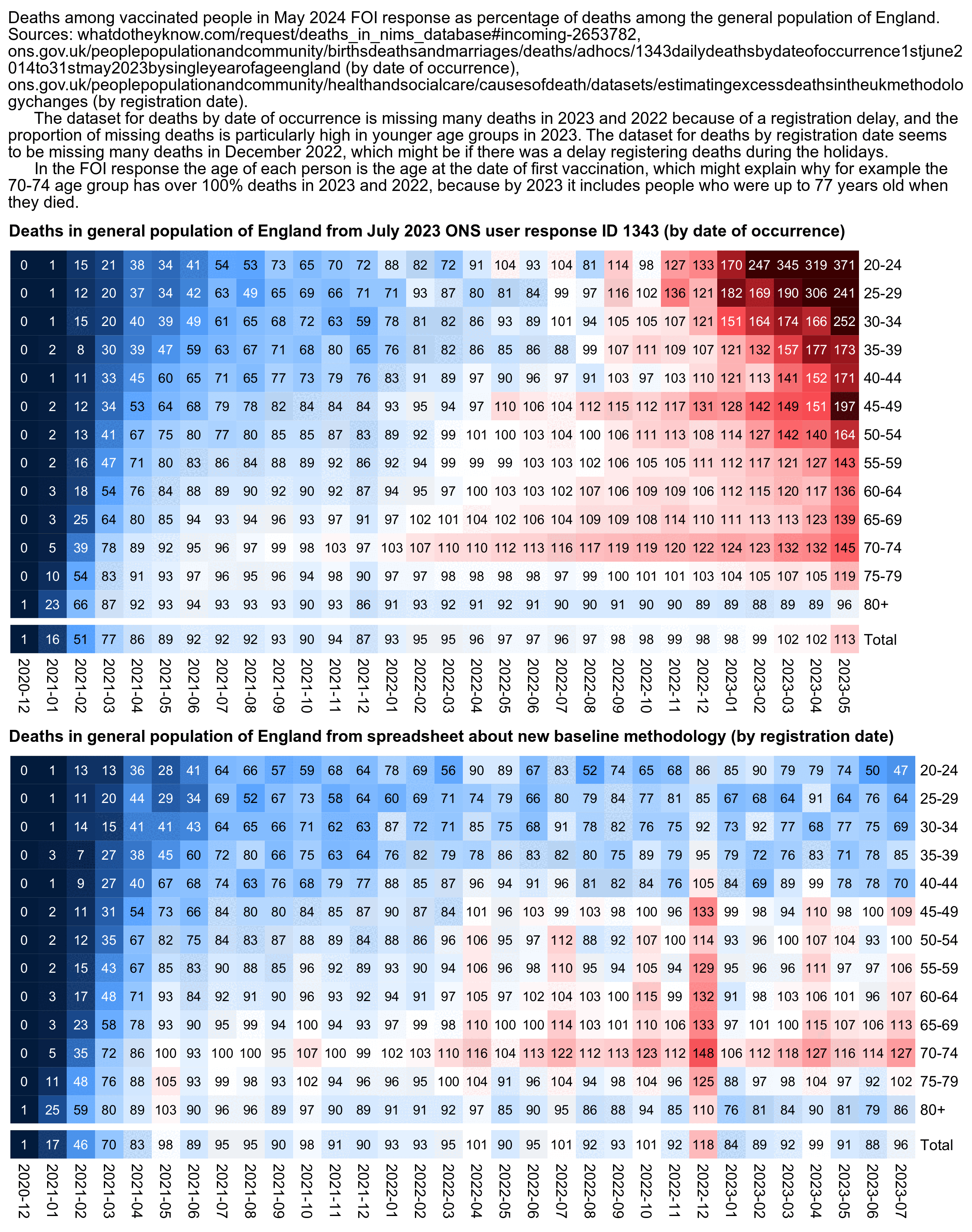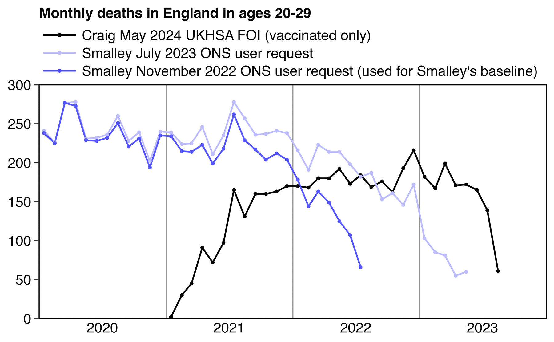 The 9th and final version of the ONS dataset for deaths by vaccination status was published in August 2023. It included data up to May 2023, but the reason why June and July were excluded from the release was probably because they were still missing too many deaths because of a registration delay. In May it looked like the trend was that the unvaccinated ASMR was soon about to cross below the ever vaccinated ASMR: [https://x.com/mothrfunkr/status/1774625071140893040]
