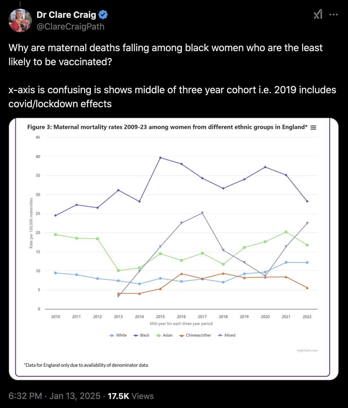 Clare Craig posted this tweet: [https://x.com/henjin256/status/1960826649777258794]