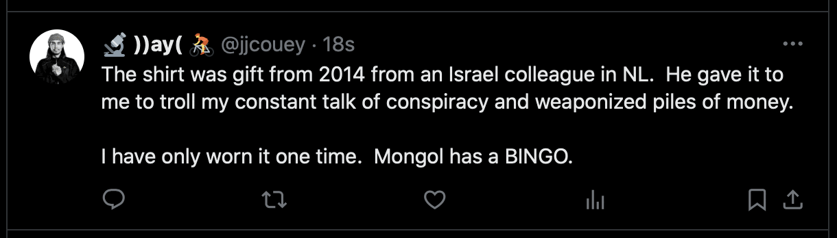 There's no way Cottrell believed himself he had actually found a secret message in the video. The video was so ridiculous that it's one of the best pieces of evidence I have that Cottrell was deliberately producing disinformation (even though credit for digging up the video goes to Housatonic, who shares my interest in documenting early coverage of COVID in alt media).