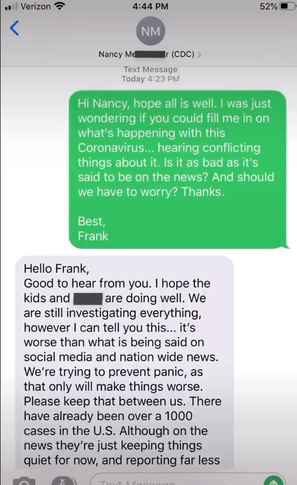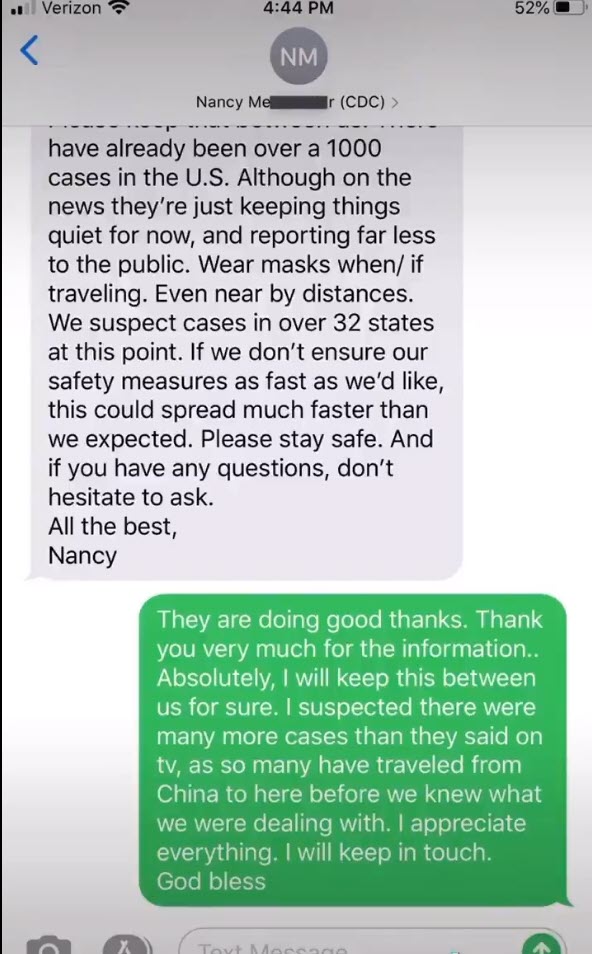 ALLEGED C.D.C. TEXT MESSAGES SAY "over 1,000" INFECTED WITH CORONAVIRUS IN U.S.A. - BEING DELIBERATELY CONCEALED