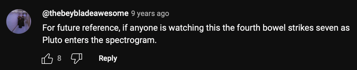 The Abraham Lincoln video has about 600 comments, but almost all of them were almost all posted in 2020 when Cottrell mentioned the video. There is only one comment posted before 2020, which says: "For future reference, if anyone is watching this the fourth bowel strikes seven as Pluto enters the spectrogram." So it might be a hint on how to continue the puzzle after getting the spectrogram image: