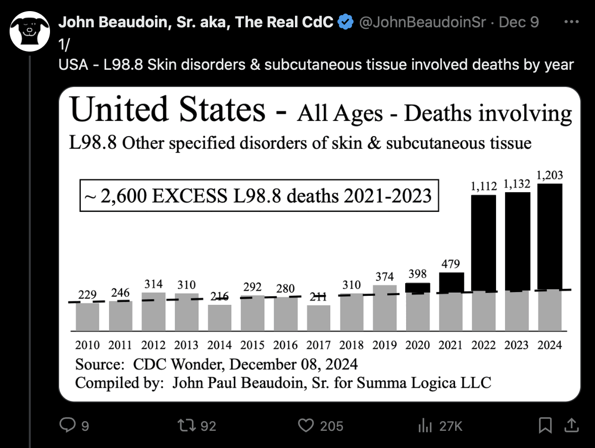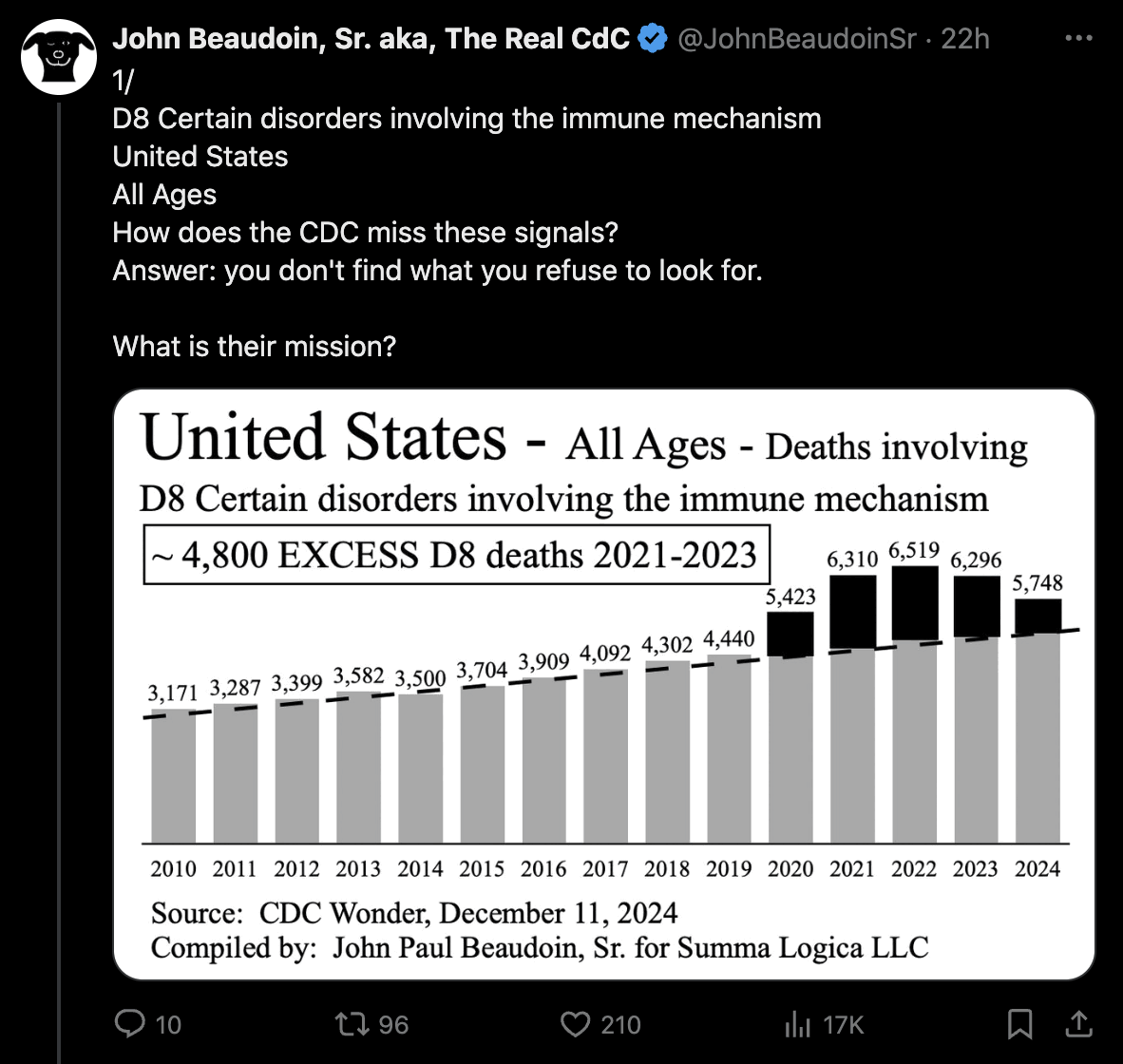 Beaudoin posted this explanation for the spike in deaths during the Delta wave: [https://x.com/JohnBeaudoinSr/status/1881185647118909808]