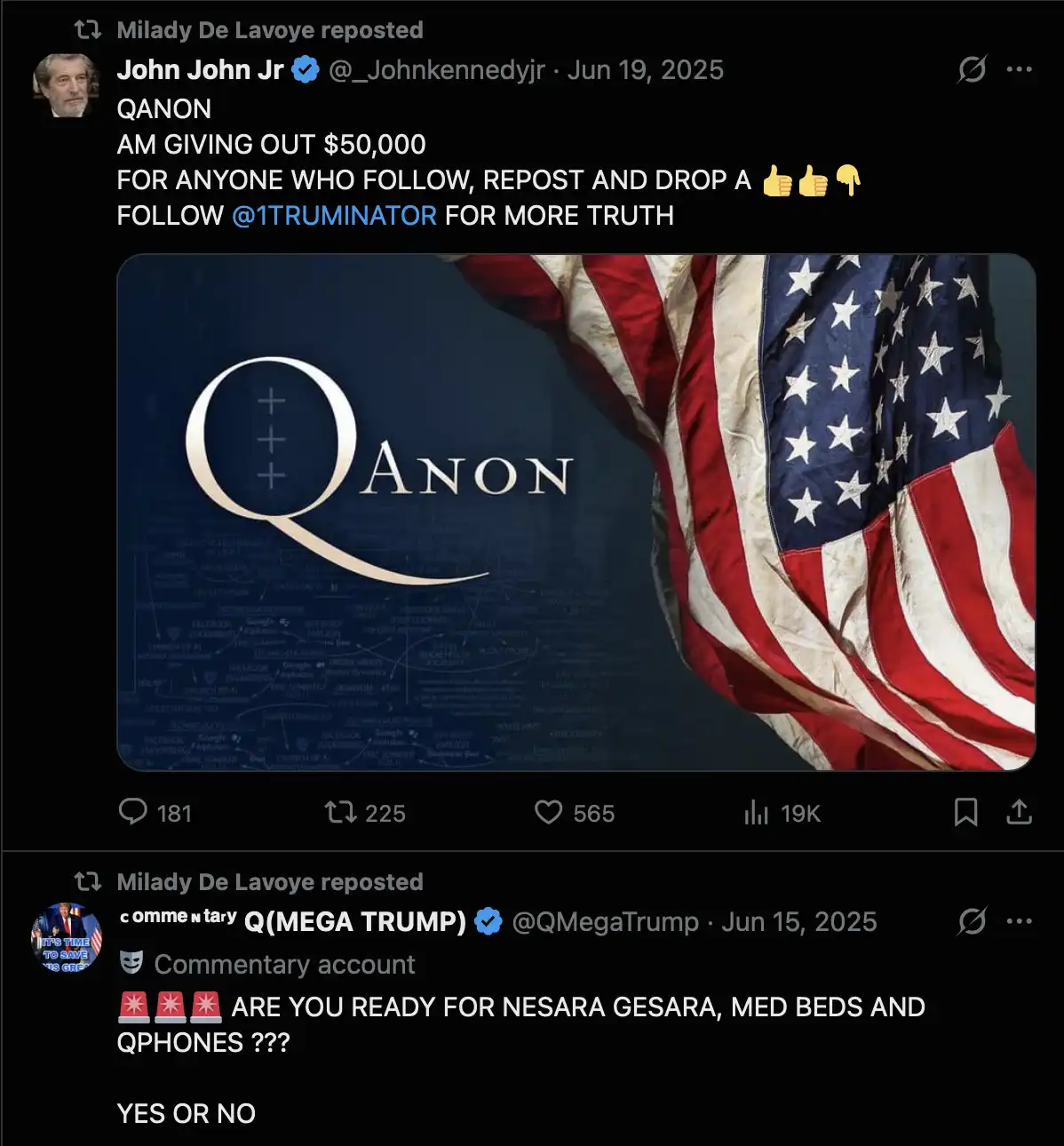 promoted by bots and who posts similar junk conspiracy content and a lot