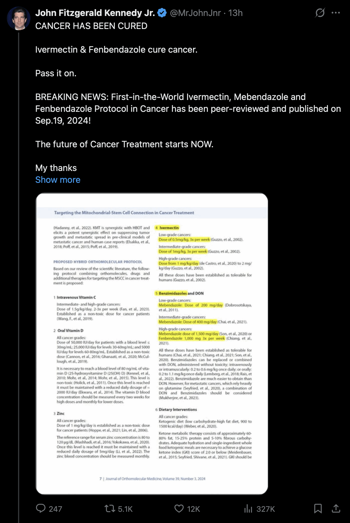 going strong, and they're now saying that cancer is cured by IVM and