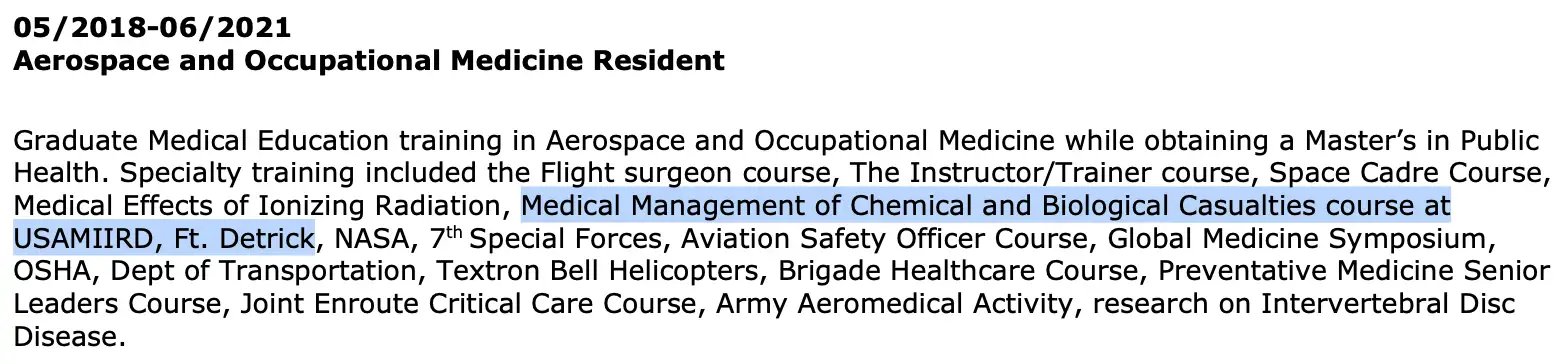 COVID in November 2019, because he had worked with military members who
