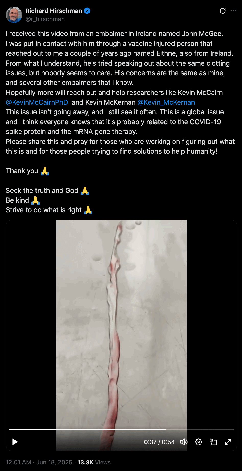 | USA, MO | dead | mortician | 2022-02-12 | Steve Kirsch | Anna Foster | possibly the second person after Hirschman who claimed they saw calamari clots |