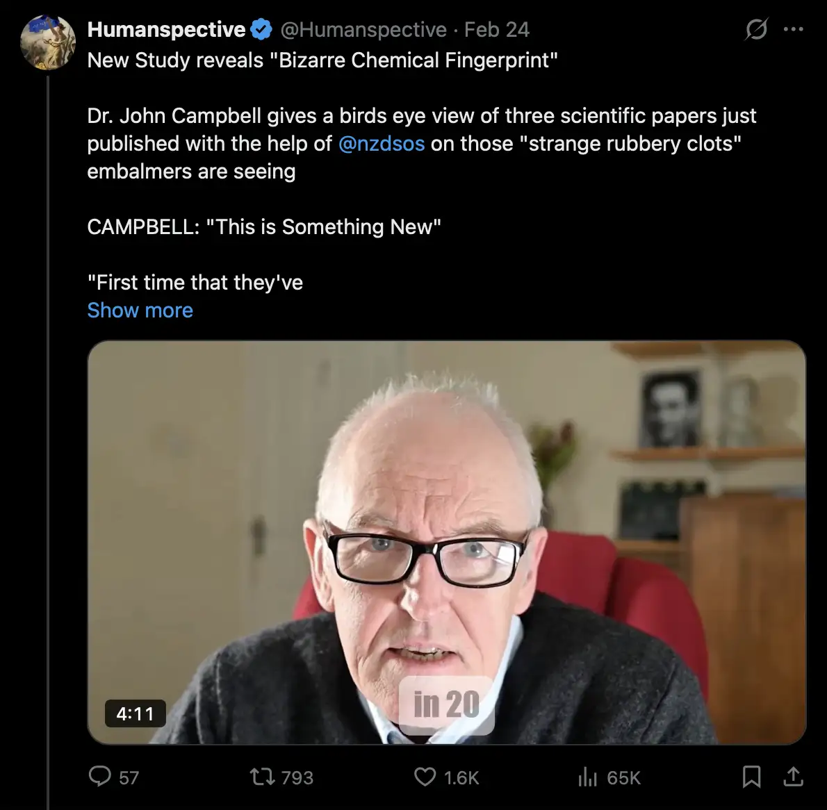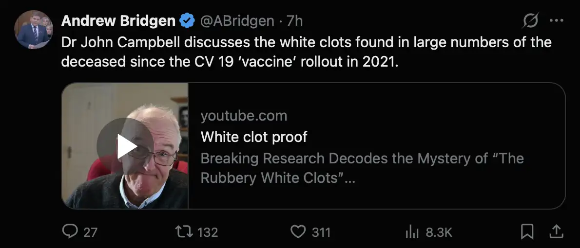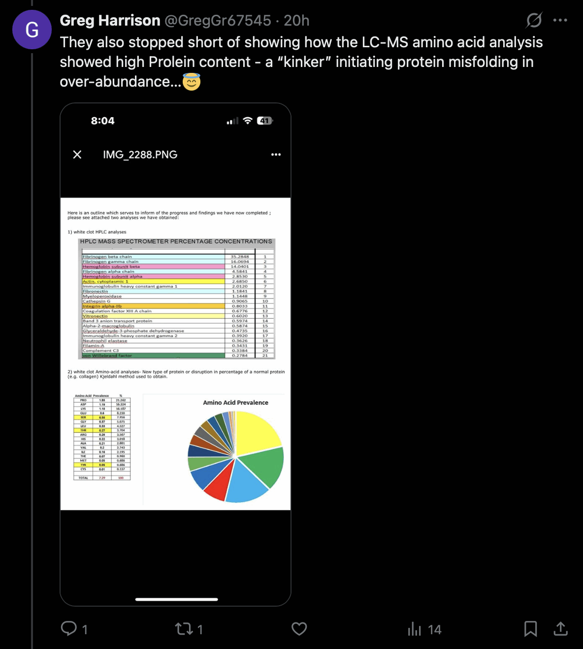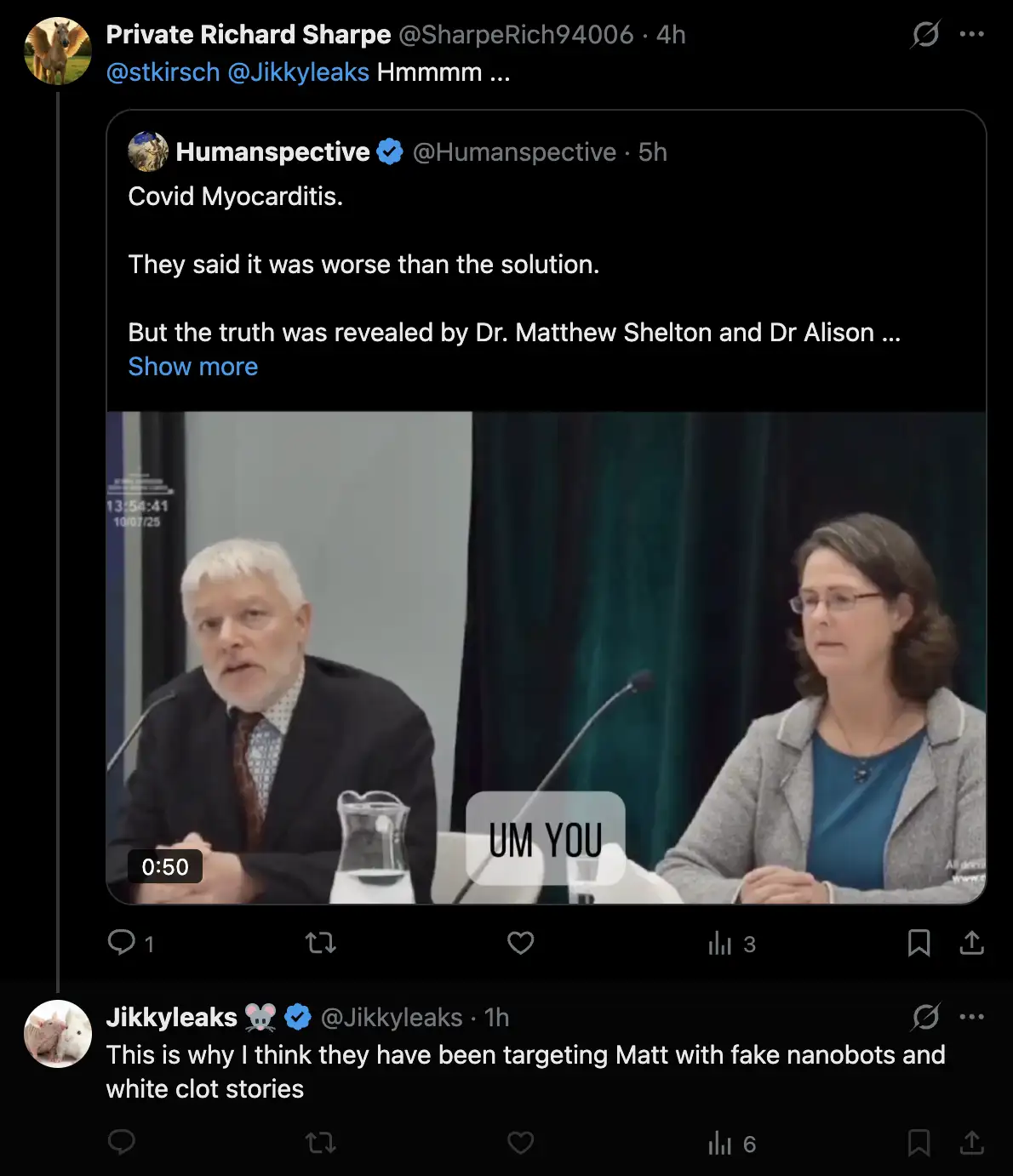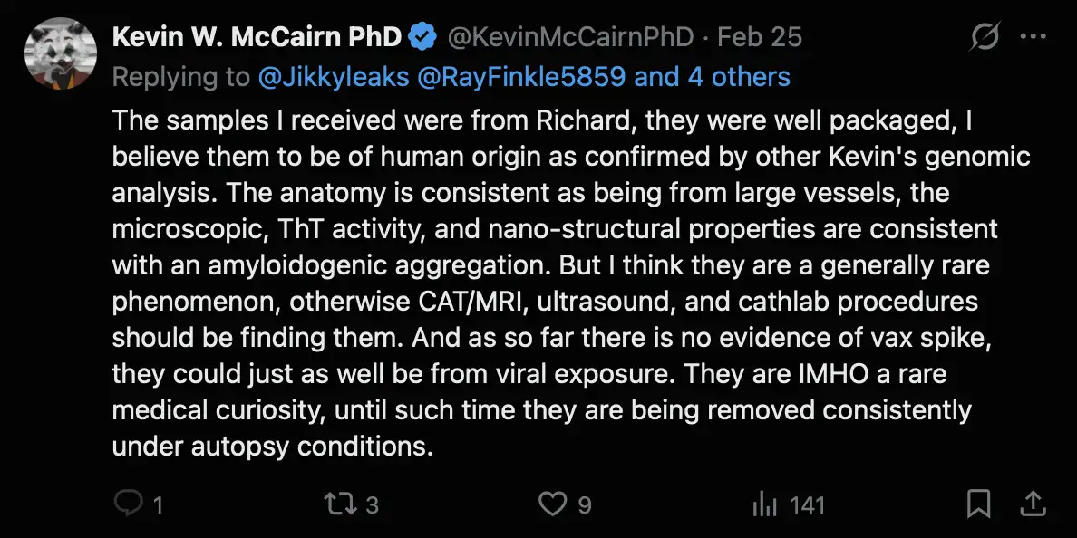Richard Hirschman, we got a clot from a living vaccine injured person,