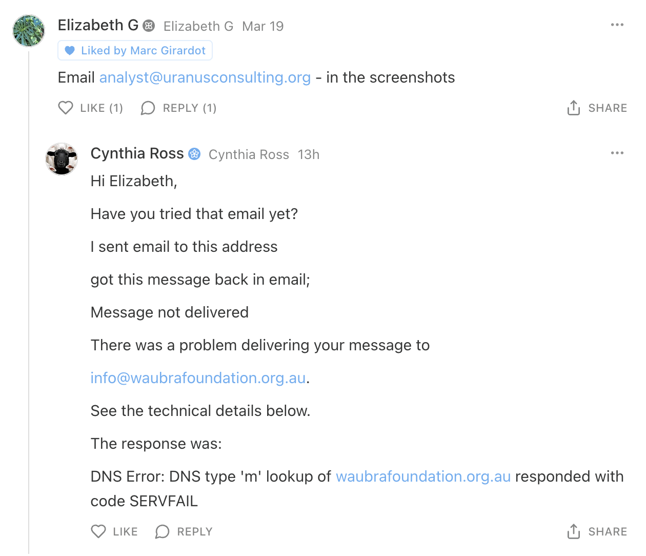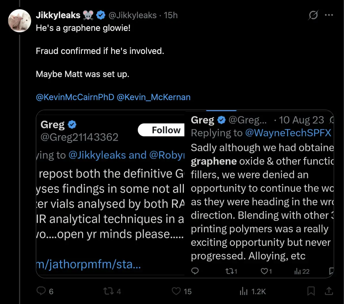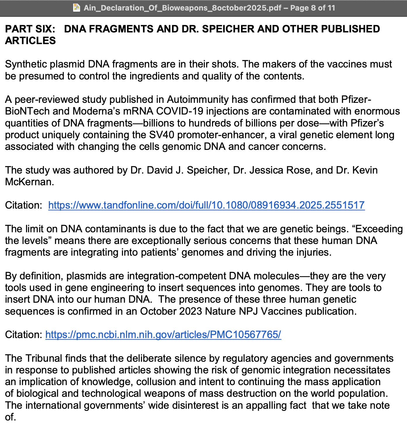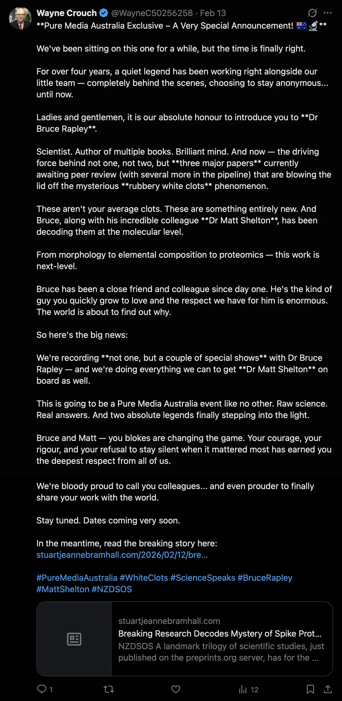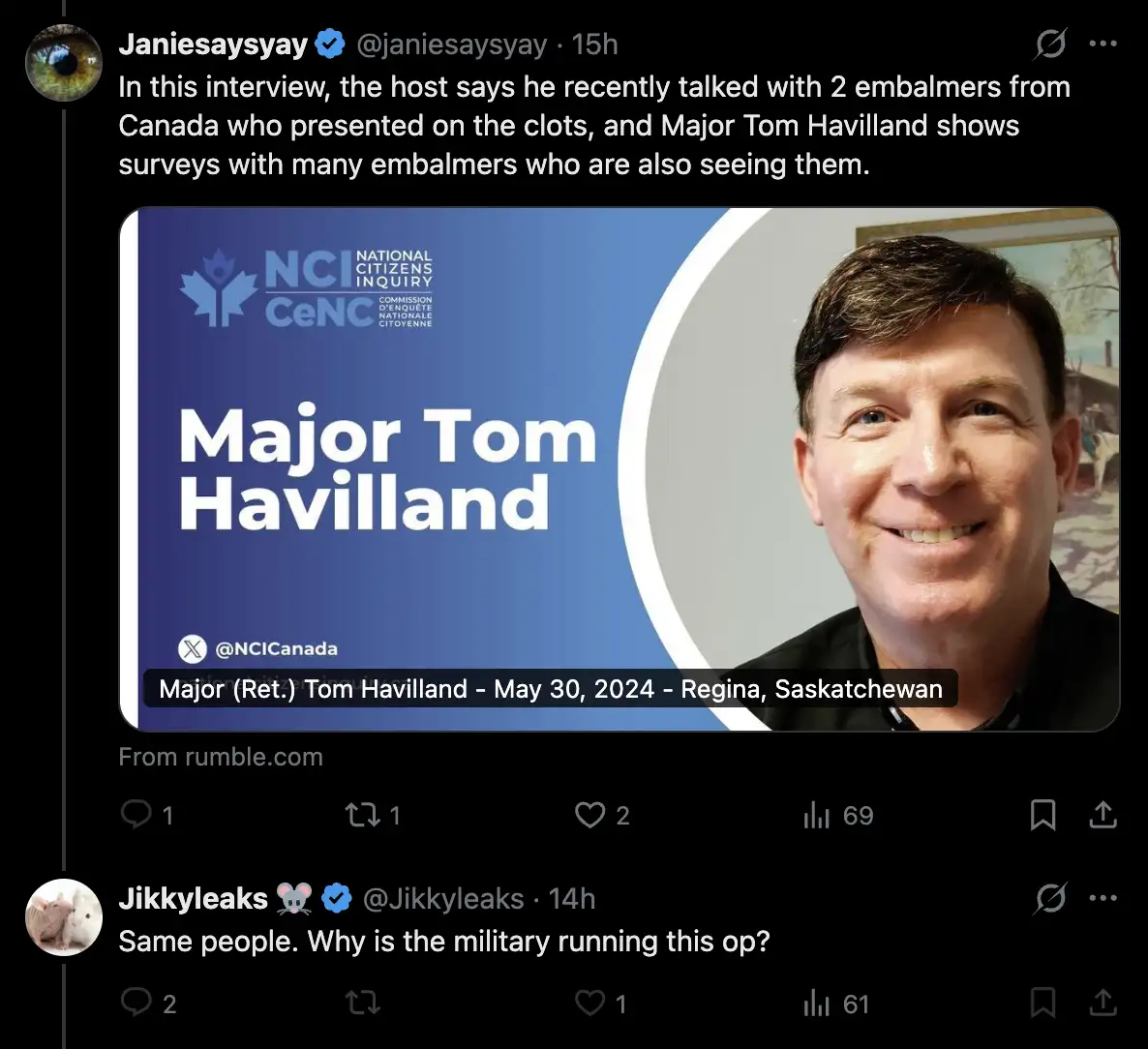 Richard Hirschman, we got a clot from a living vaccine injured person,