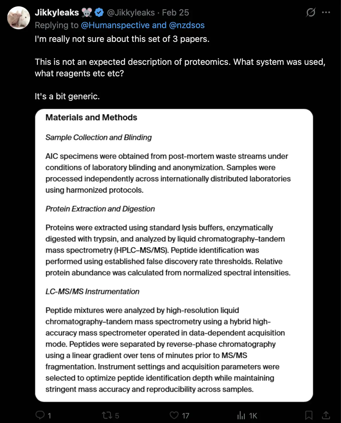 we found the same filaments that we see in the blood, absolutely the