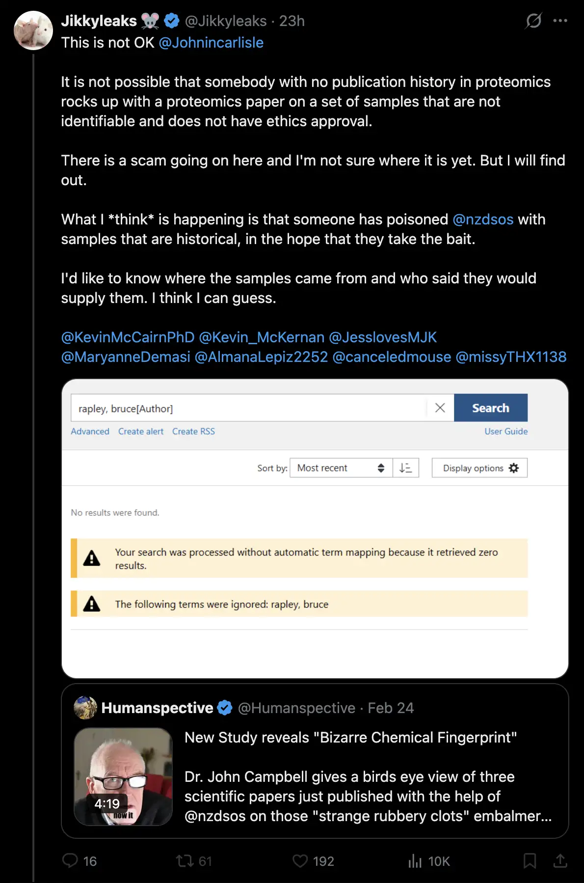 claimed that calamari clots contain spider silk protein. She said: "Clifford Carnicom and I have got the deceased clots from