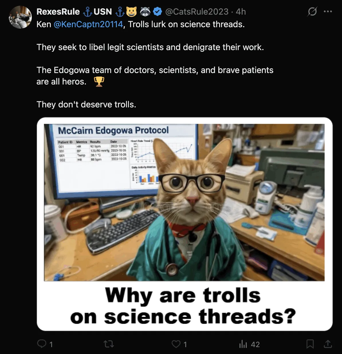 a troll, and that McCairn and his patients are heroes who don't deserve