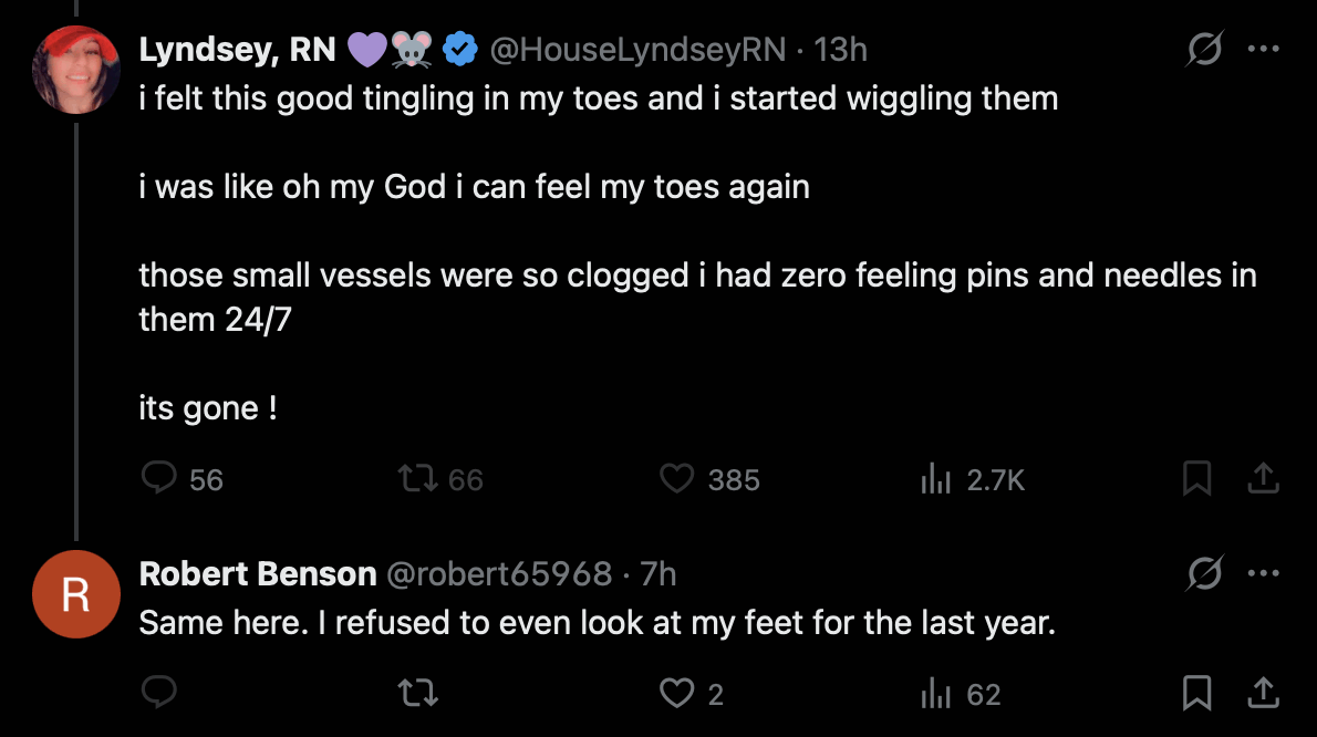 When I asked what other explanations there might be for the reduced numbness in toes after the DFPP treatment, Grok produced this list of 4 possible explanations: