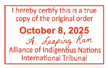 Bogue, who has no evident indigenous bloodline, without consent, has allegedly used 'blood' signatures of Clan Mothers, the Grand Chief, Indigenous Judges who resigned, along with his self-appointed 'native' names (Spirit Warrior - Leaping Ram), on mendacious claims and orders in colonial courts.