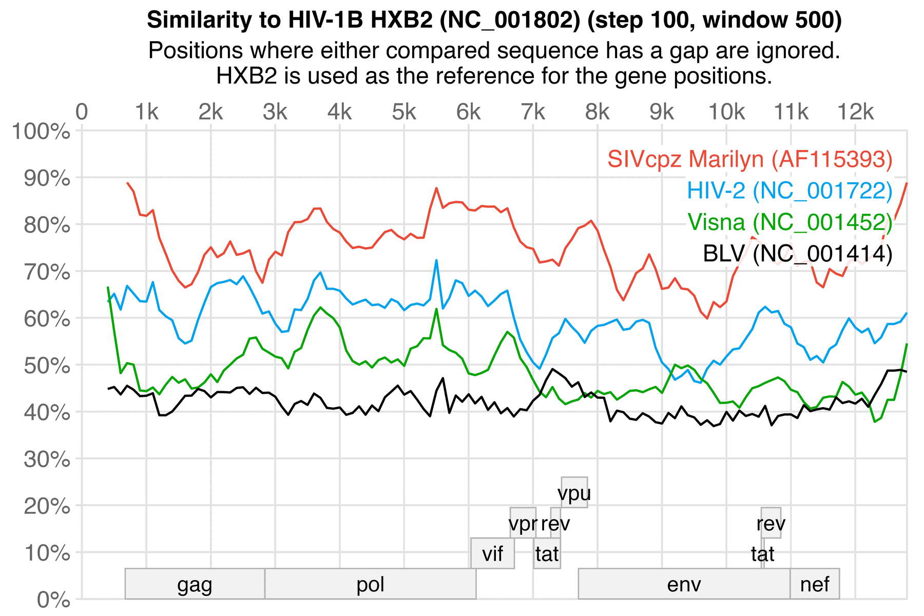 The first point by ChatGPT was partially wrong, because "bovine visna virus" was an early name for the bovine lentivirus that is now called BIV (bovine immunodeficiency virus). [https://journals.sagepub.com/doi/pdf/10.1177/014107688908200634] If positions with gaps are ignored, the reference genome of BIV has about 50% nucleotide similarity to the reference genome of visna: