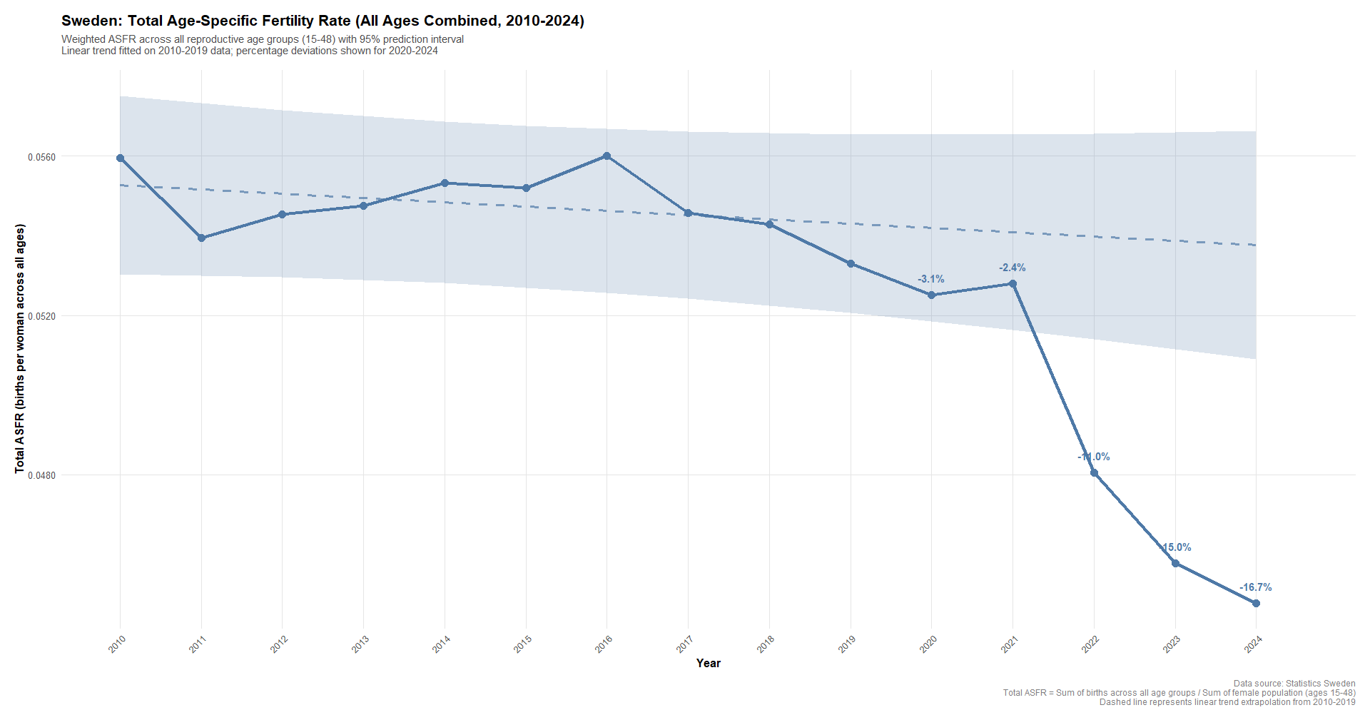 Above I marked Hulscher's cells for 2023 with an asterisk because Hulscher et al. calculated them as a linear projection of the data for 2021 and 2022. In the real data for 2023 that was published in September 2024, the number of deaths was slightly lower than Hulscher's projected number of deaths for 2023: