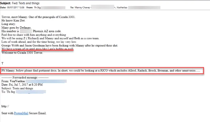 here", "America wake up", "All your doors are unlocked", "Big Brother I am watching you", and "3301":